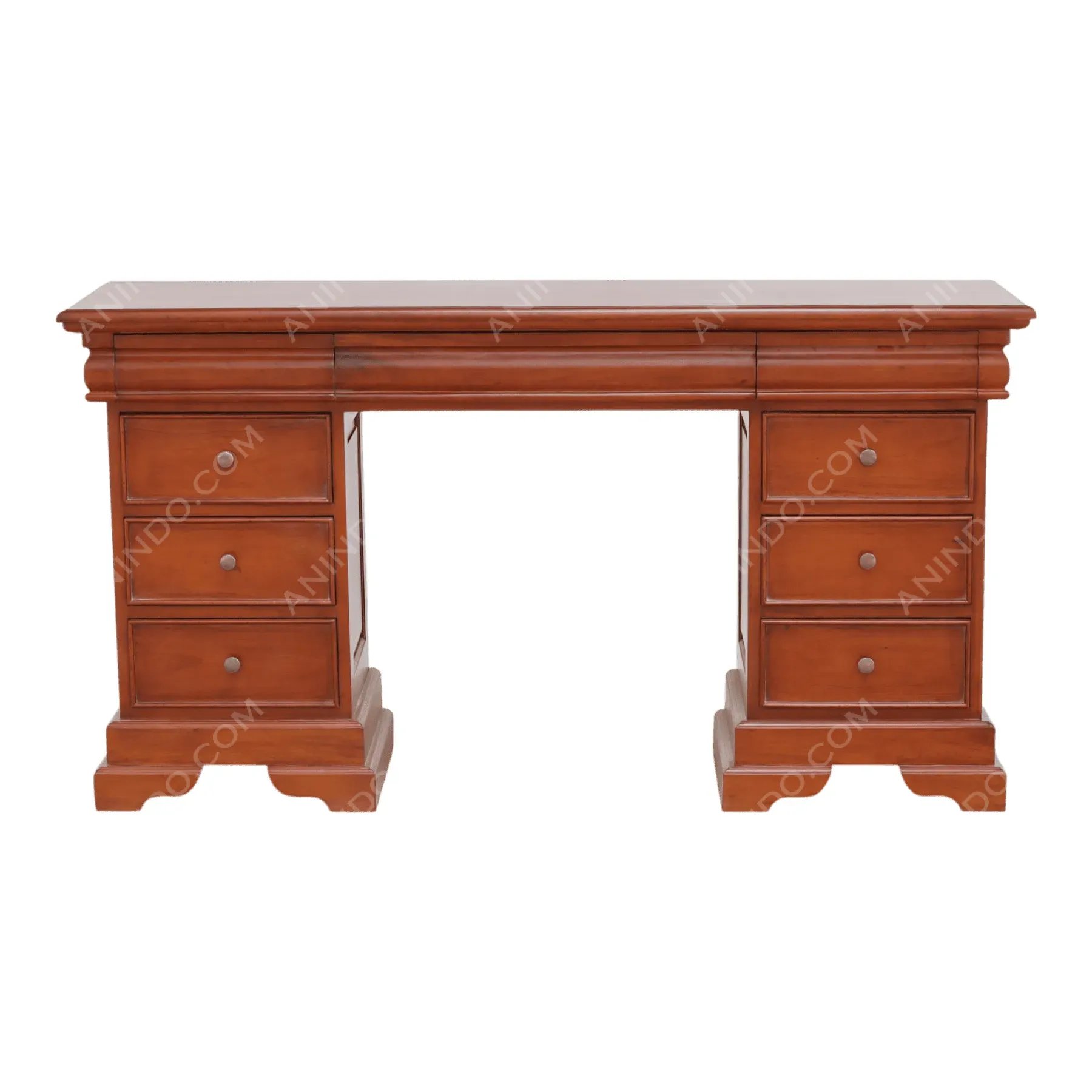 Handcrafted desks and ergonomic chairs merging timeless Indonesian wood warmth with enduring functionality