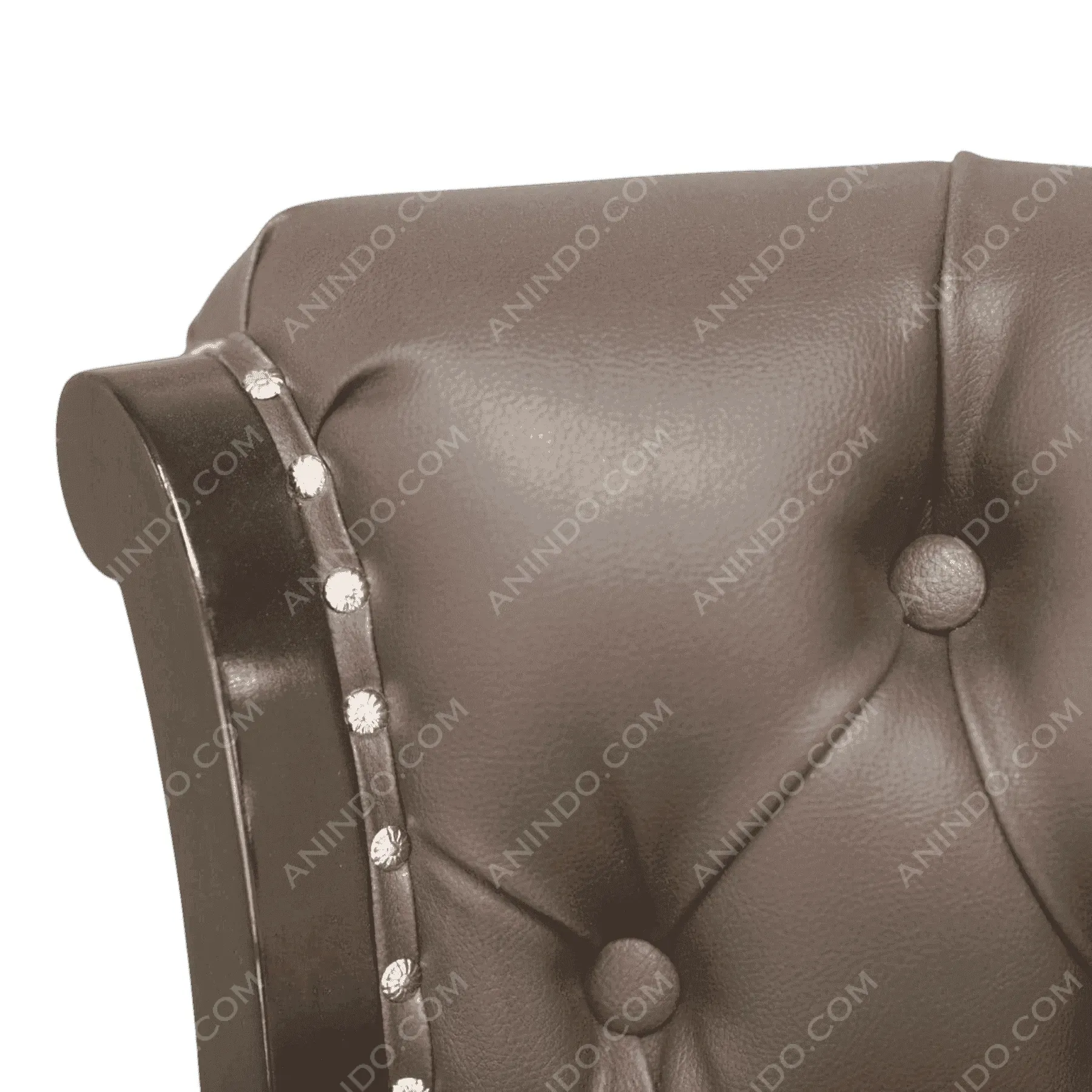 Primary Frame: Solid Mahogany wood | Joinery: Traditional Construction | Finish: Dark Espresso Stain | Upholster & Cushion: High-Grade Faux Leather or Vinyl