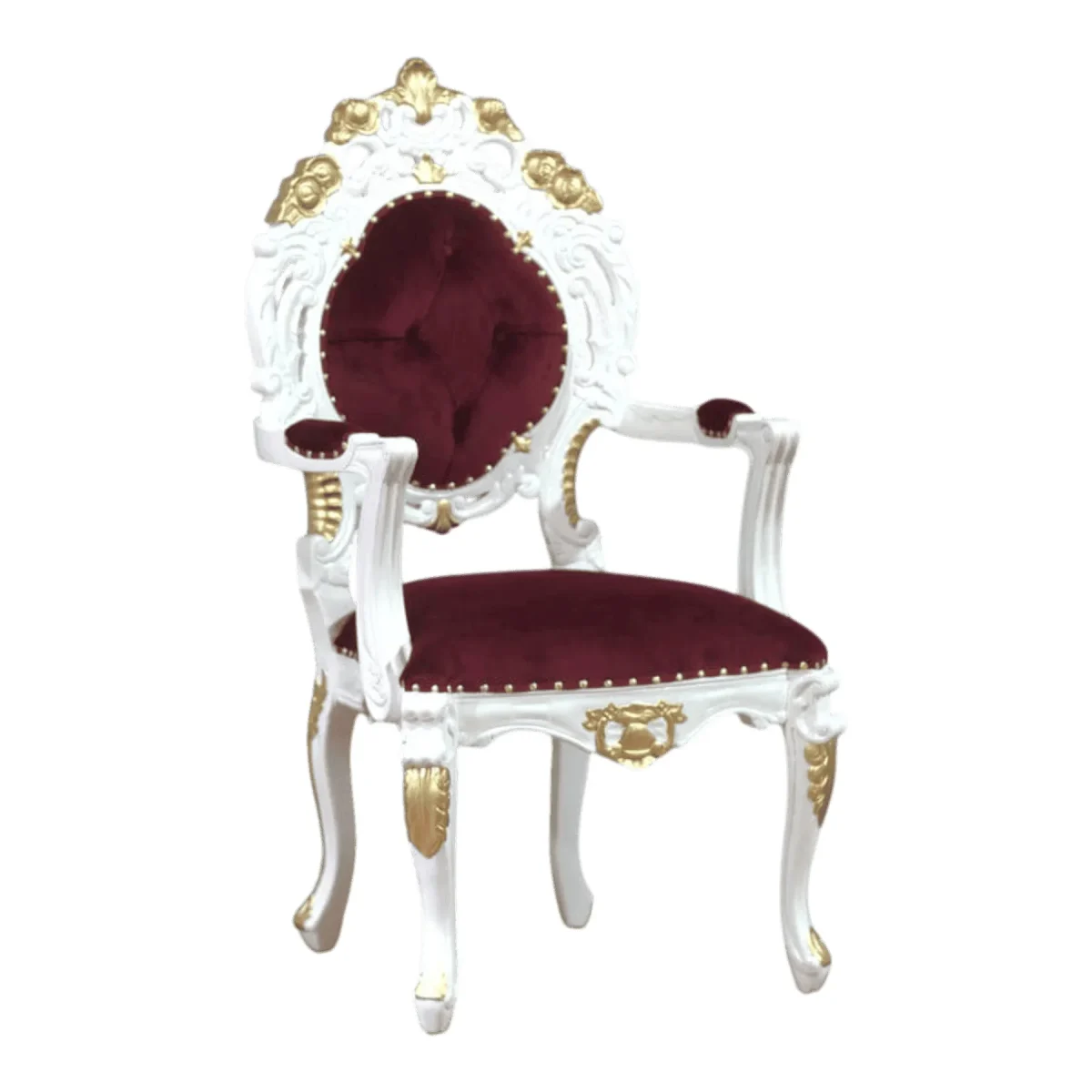 Imagine stepping into a room where history meets modern luxury with this breathtaking seating piece designed for those who appreciate the finer details of life Each curve is meticulously hand-carved by master artisans ensuring that no two pieces are exactly alike while the vibrant red velvet upholstery offers a tactile experience that is both soft and resilient This chair serves as a bold focal point in any study or living area transforming a simple corner into a throne of comfort and style The stark contrast between the pristine white frame and the opulent gold leaf accents creates a visual harmony that speaks of old-world charm and contemporary sophistication Investing in this piece means bringing home an heirloom that will spark conversations and provide a sanctuary for relaxation after a long day as you sink into the plush tufted backrest and feel the support of a frame built to last for generations through timeless appeal