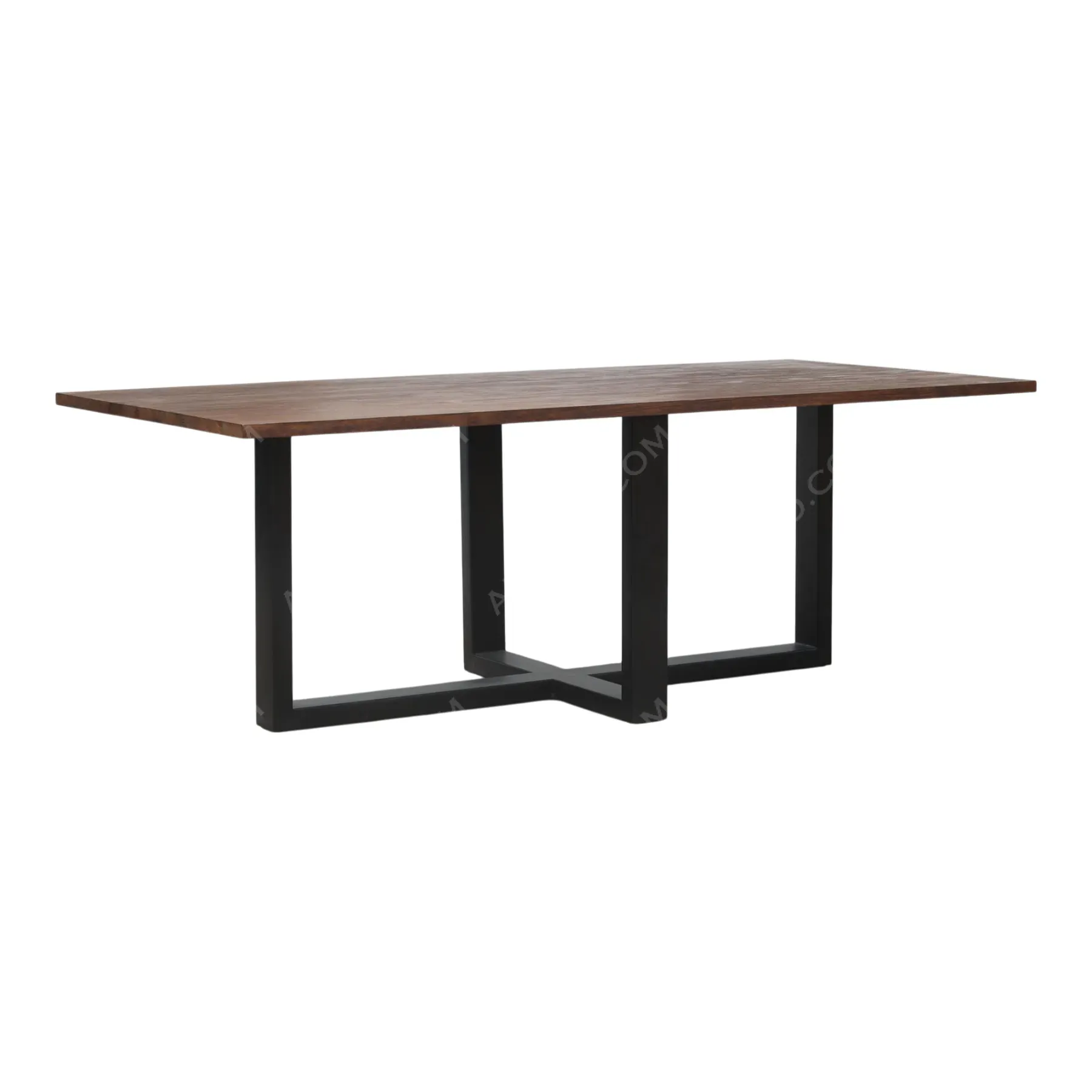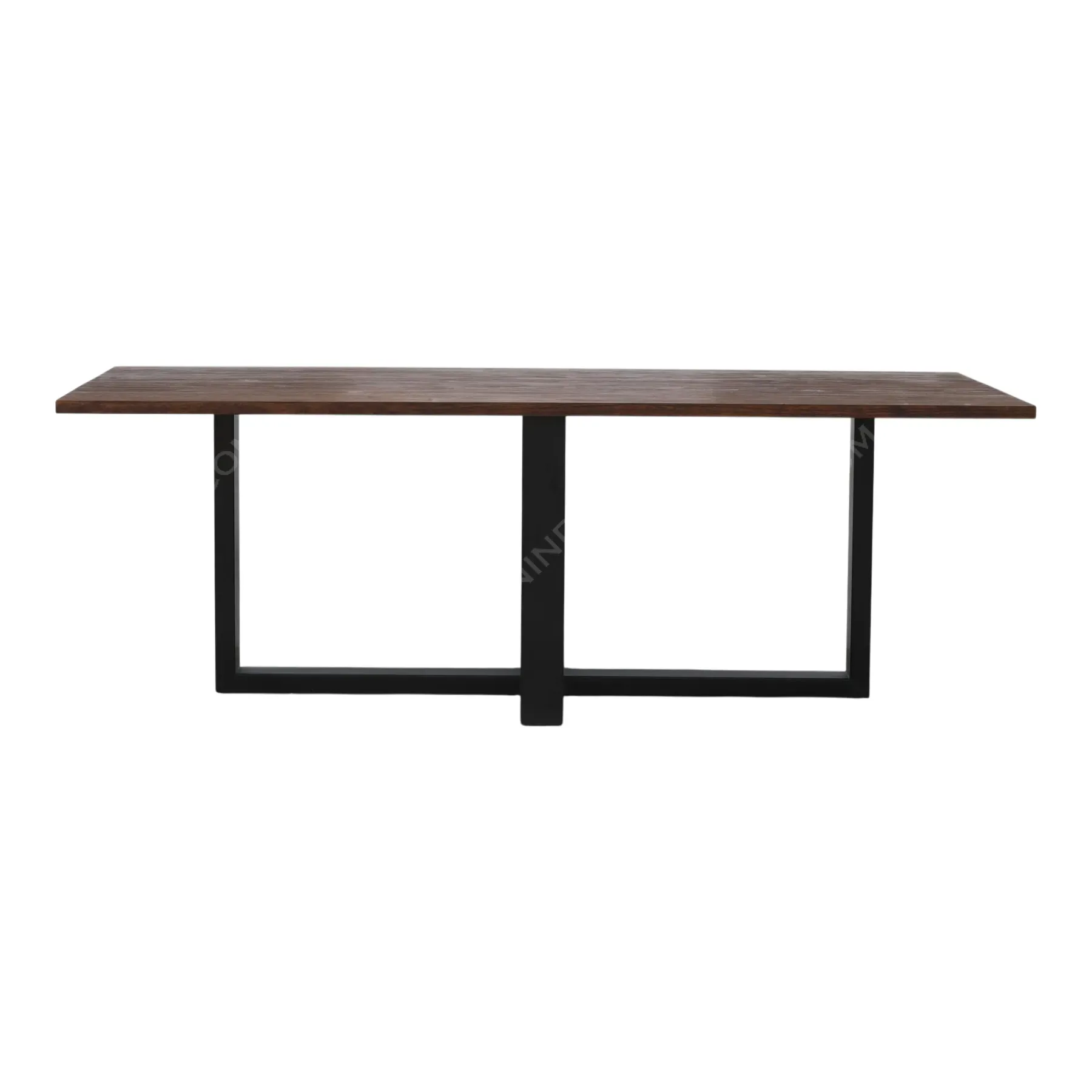 This dining chair is a work of art, combining an organic teak base with a complex, fully-wrapped rope seat The frame is entirely enveloped in black all-weather rope, from the supportive seat to the intricately cross-woven backrest, which provides both flexibility and striking visual detail A light grey-blue seat cushion adds a soft contrast and comfortable seating This chair is a sophisticated statement for any modern dining space, indoors or out