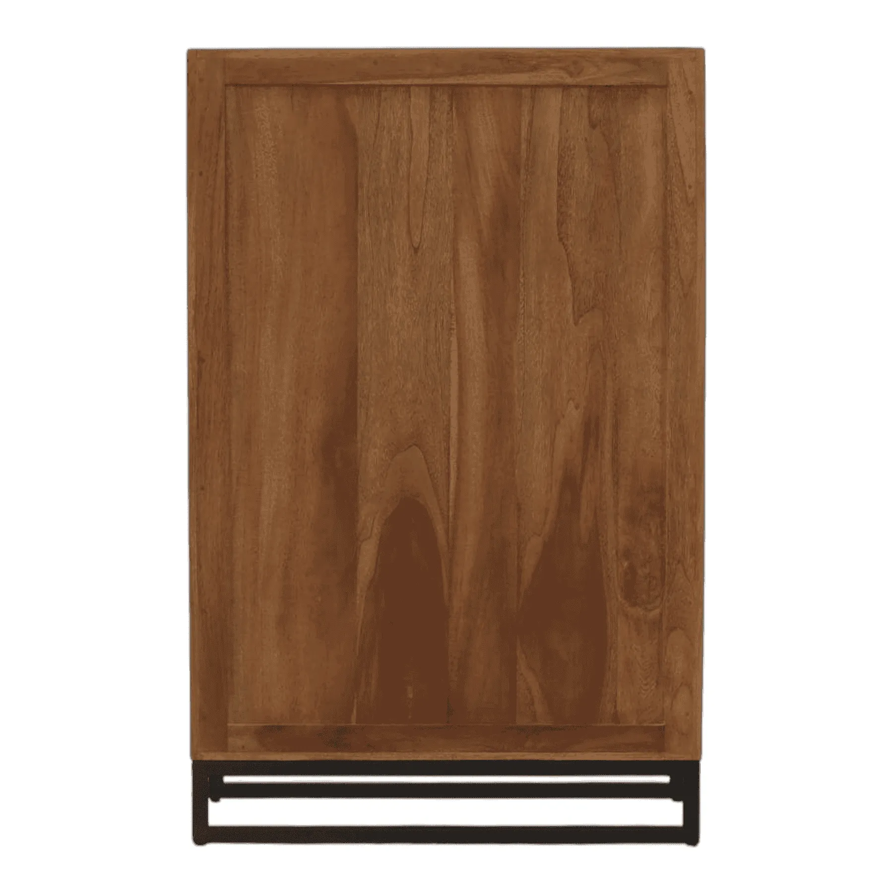 Primary Frame: Teak Wood Veneer over Solid Wood Core | Base: Powder-Coated Iron | Finish: Natural Teak Finish | Hardware: Blackened Steel Pulls