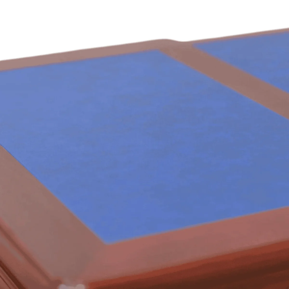 Primary Frame: Premium Solid Mahogany | Joinery: Mortise and Tenon with Dovetail Drawers | Finish: Deep Cherry Stain with Satin Lacquer | Upholster & Cushion: Inset Faux-Leather Writing Pad