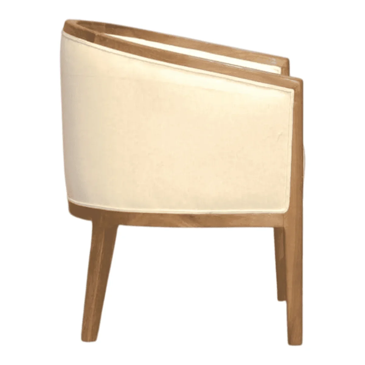 Experience the seamless blend of classic barrel-back architecture and contemporary minimalism with this exquisite seating piece Designed to cradle the body in comfort the chair features a continuous curved wooden frame that radiates organic warmth and structural integrity The plush cream upholstery offers a soft tactile counterpoint to the solid wood grain creating a sophisticated visual harmony that elevates any interior space Whether positioned as a focal point in a sun-drenched reading nook or paired for intimate conversation in a refined lounge this armchair speaks to a lifestyle of curated elegance and quiet luxury It is more than just furniture it is a sanctuary of style crafted for those who appreciate the finer details of artisanal design and enduring quality