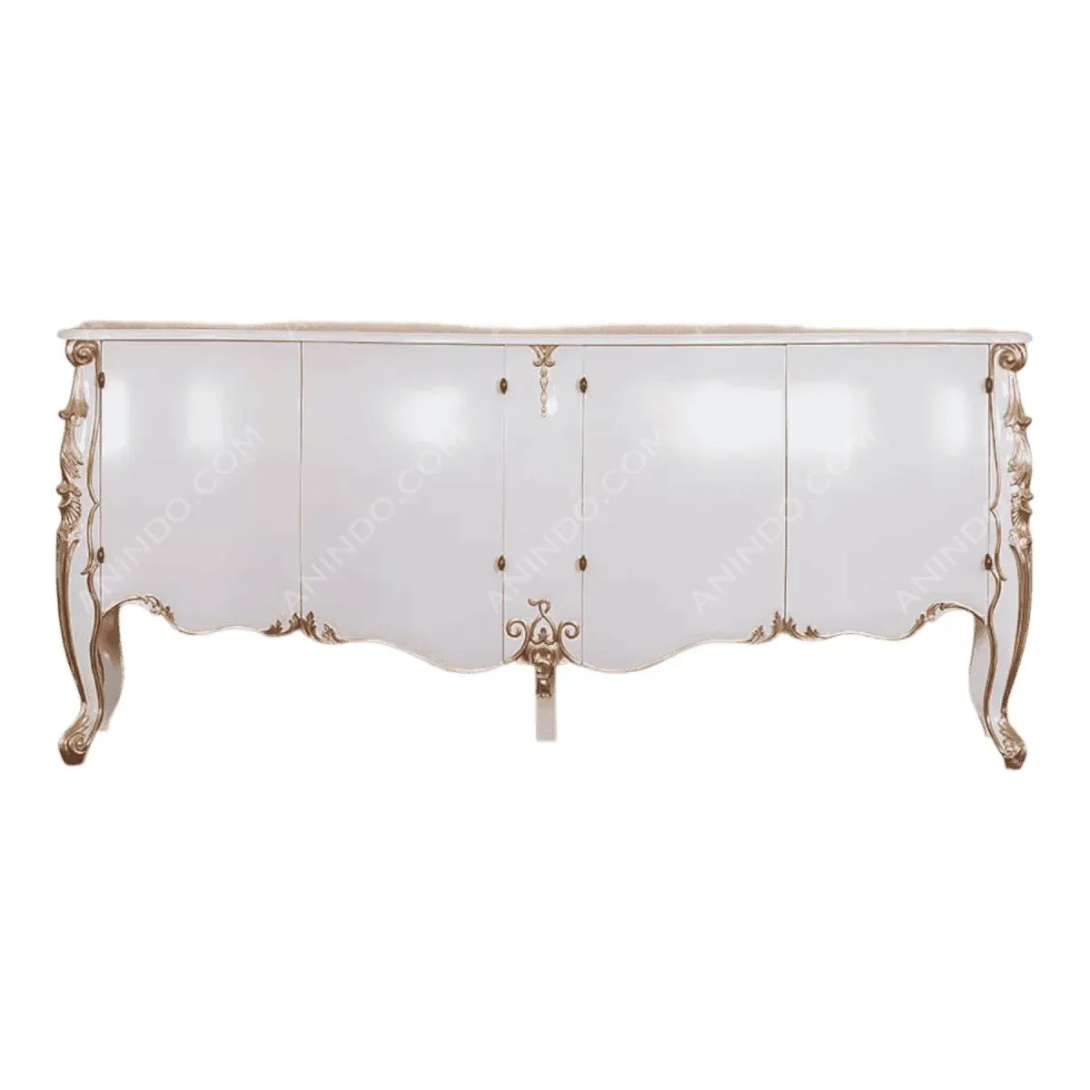 Elevate your interior aesthetic with this exquisite sideboard a masterclass in sophisticated elegance and timeless design Crafted for those who appreciate the finer details this piece serves as the perfect anchor for a grand dining room or an opulent living space The gentle curves and delicate carvings evoke an atmosphere of refined historical grandeur providing both a functional storage solution and a striking focal point that captures the imagination Designed to seamlessly integrate into high-end interiors this sideboard offers a generous surface for displaying cherished heirlooms or curated decor items allowing you to showcase your impeccable taste With its harmonious balance of form and utility this piece invites you to experience a lifestyle of graceful luxury where every element is carefully considered to enrich your home and elevate your daily living experience