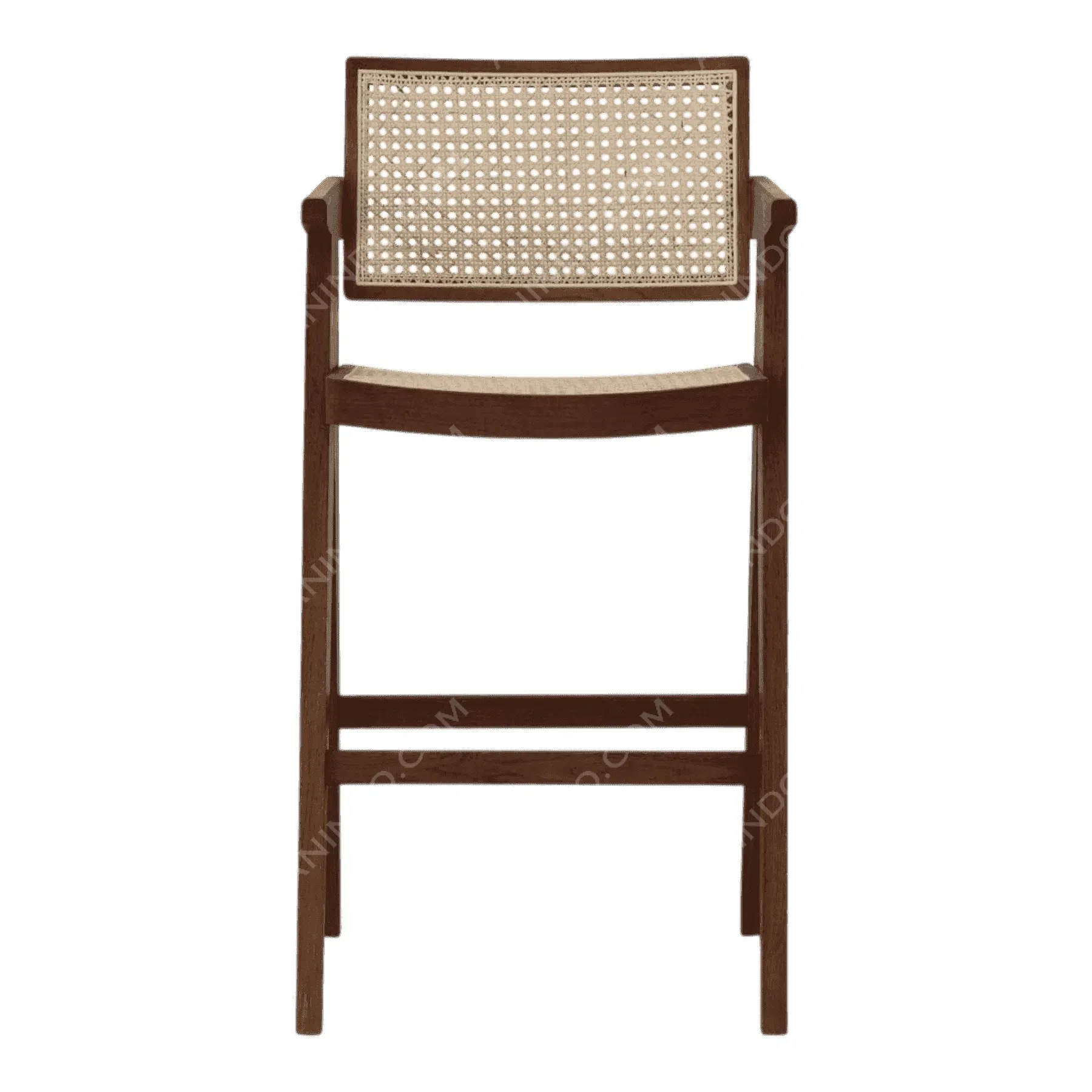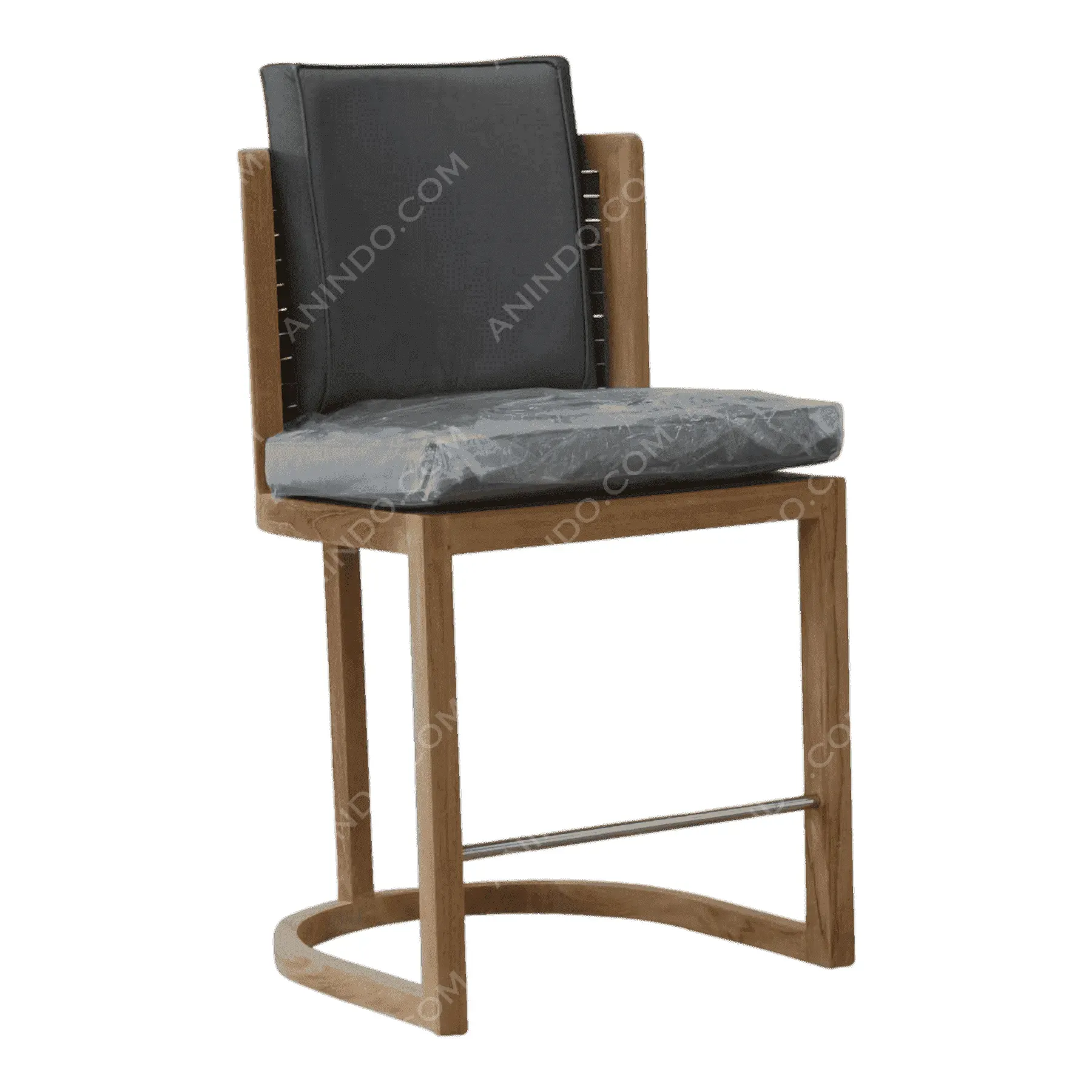 This bar stool combines the timeless durability of teak with a classic, welcoming design Its most prominent feature is the curved, enveloping backrest, formed from vertical slats that provide both comfort and support The rounded arms flow seamlessly from the back, creating a “captain’s chair” silhouette The slatted seat and sturdy four-leg base, complete with footrests, ensure stability and comfort Crafted from solid teak wood, this stool is perfect for both indoor and outdoor bars, offering a touch of nautical charm and enduring quality