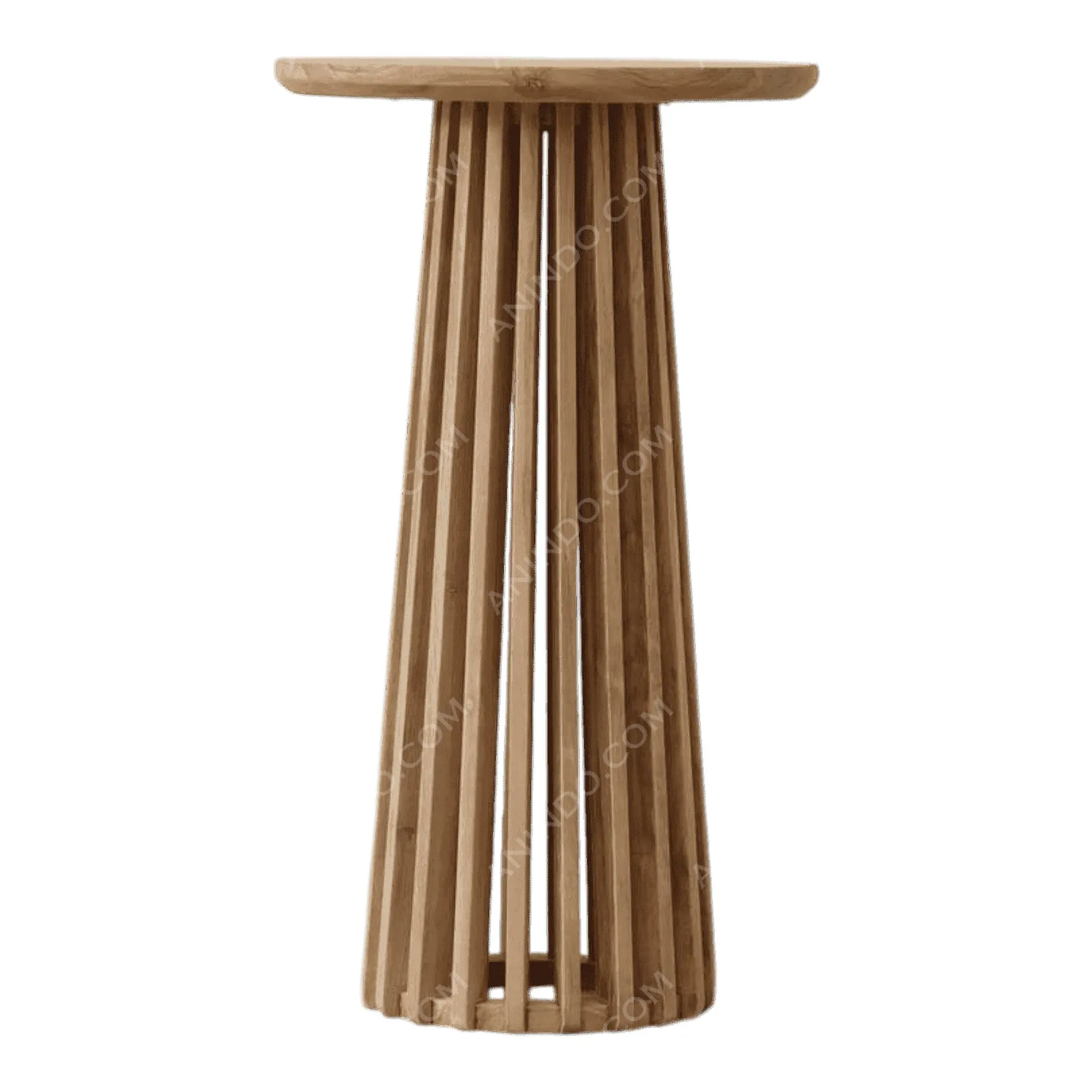 This bar stool combines the timeless durability of teak with a classic, welcoming design Its most prominent feature is the curved, enveloping backrest, formed from vertical slats that provide both comfort and support The rounded arms flow seamlessly from the back, creating a “captain’s chair” silhouette The slatted seat and sturdy four-leg base, complete with footrests, ensure stability and comfort Crafted from solid teak wood, this stool is perfect for both indoor and outdoor bars, offering a touch of nautical charm and enduring quality