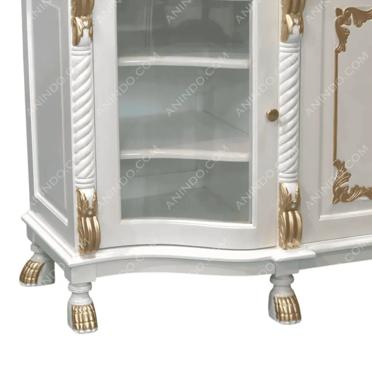 Dine in the presence of royalty with a sideboard that exudes neoclassical grandeur Fluted columns and gold leaf accents frame the glass display cabinets allowing you to showcase fine china with pride The central solid doors feature gilded moulding that draws the eye creating a focal point of luxury and refined taste for the formal dining room