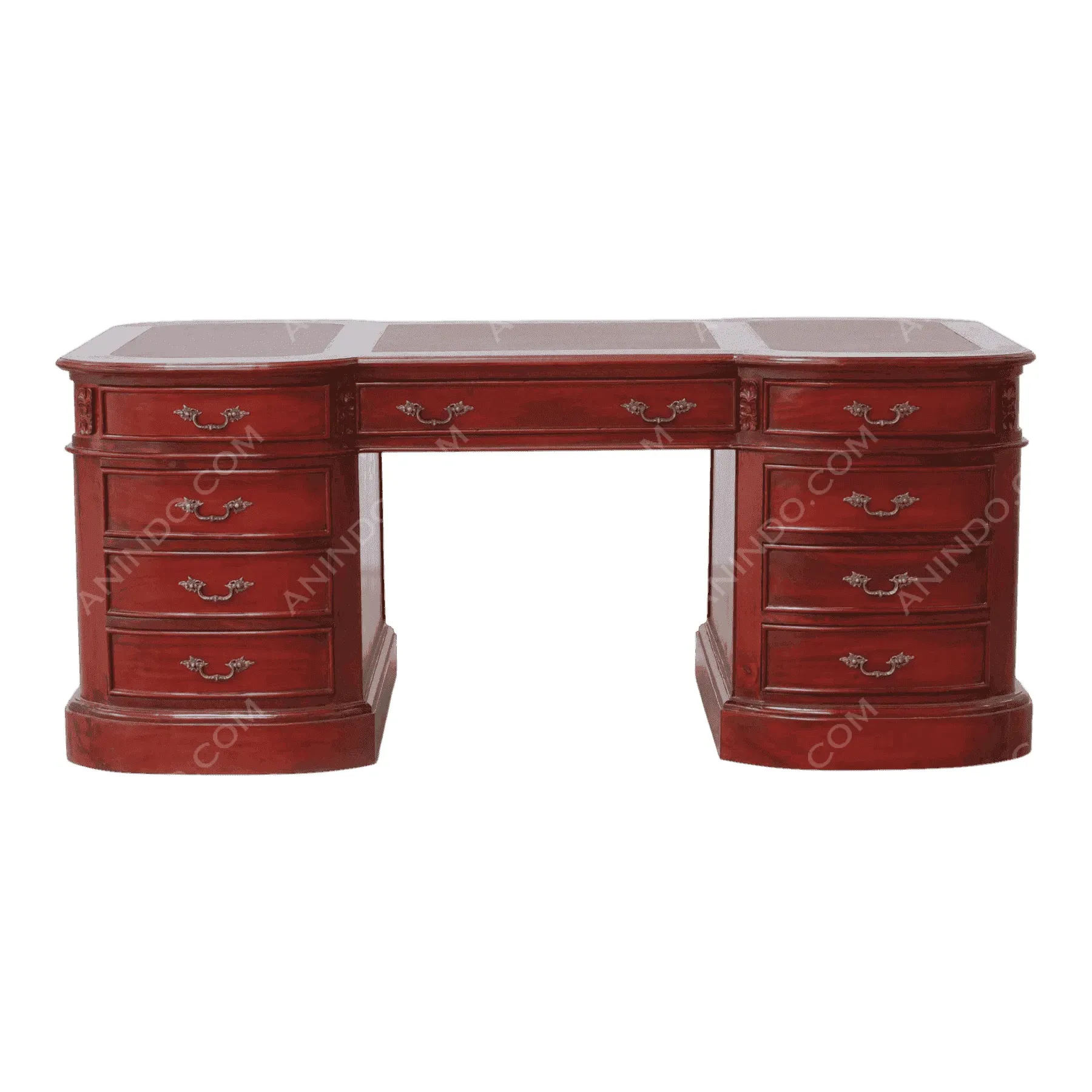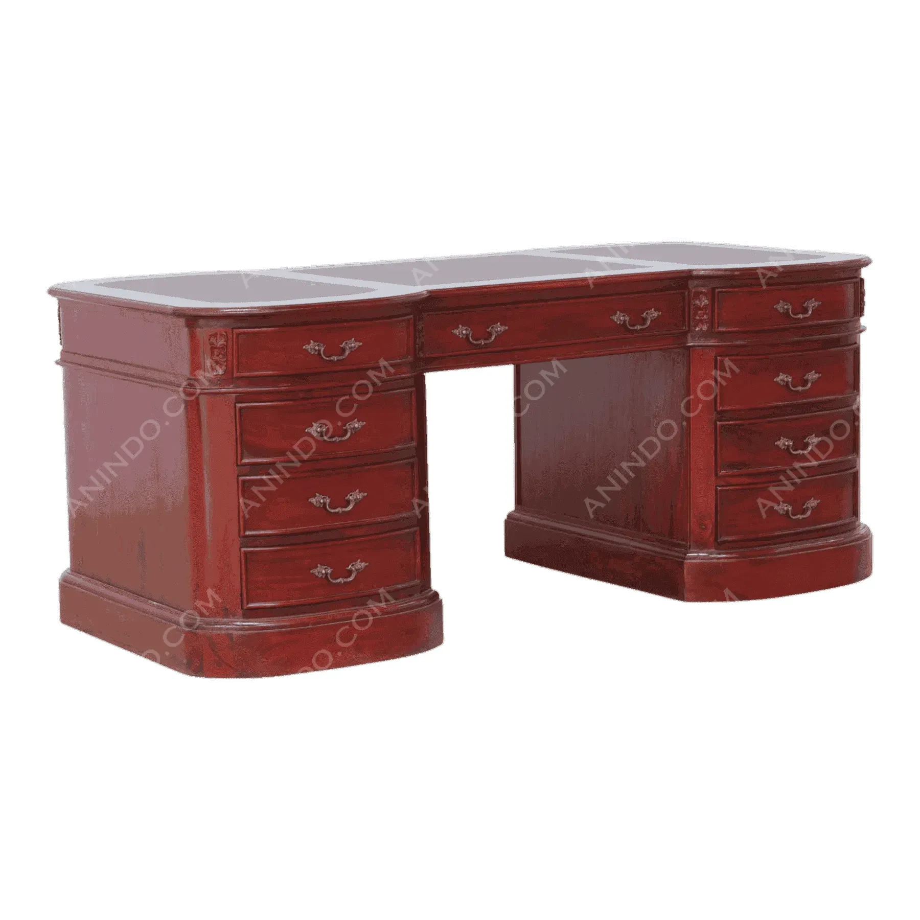 Base Wood: Warm, medium-brown Mahogany | Upholstery: Deep Forest Green or Black Leather | Trim: Brass Nailheads