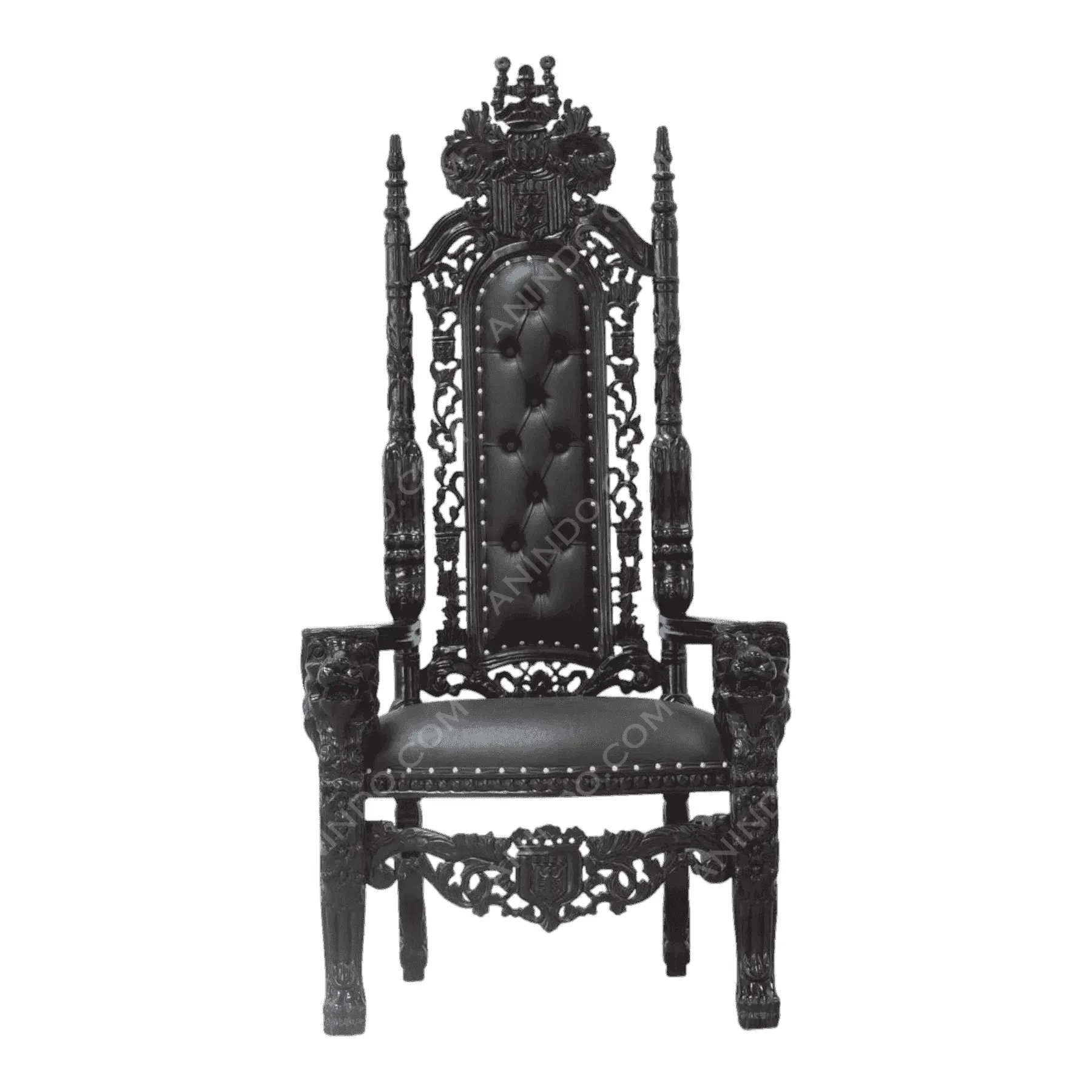 This chair rejects modern, lightweight office design in favor of massive, historical presence; Every element is ornate, from the carved crest to the feet; The button-tufting and leather upholstery provide a classic, comfortable counterpoint to the intricate woodwork, creating a chair that signifies power and permanence
