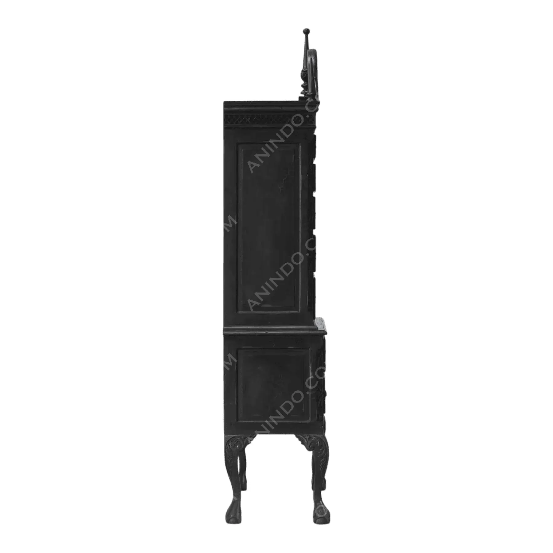 Deep, uniform Ebonized Black, likely with a satin finish that catches the light on the numerous carved details.