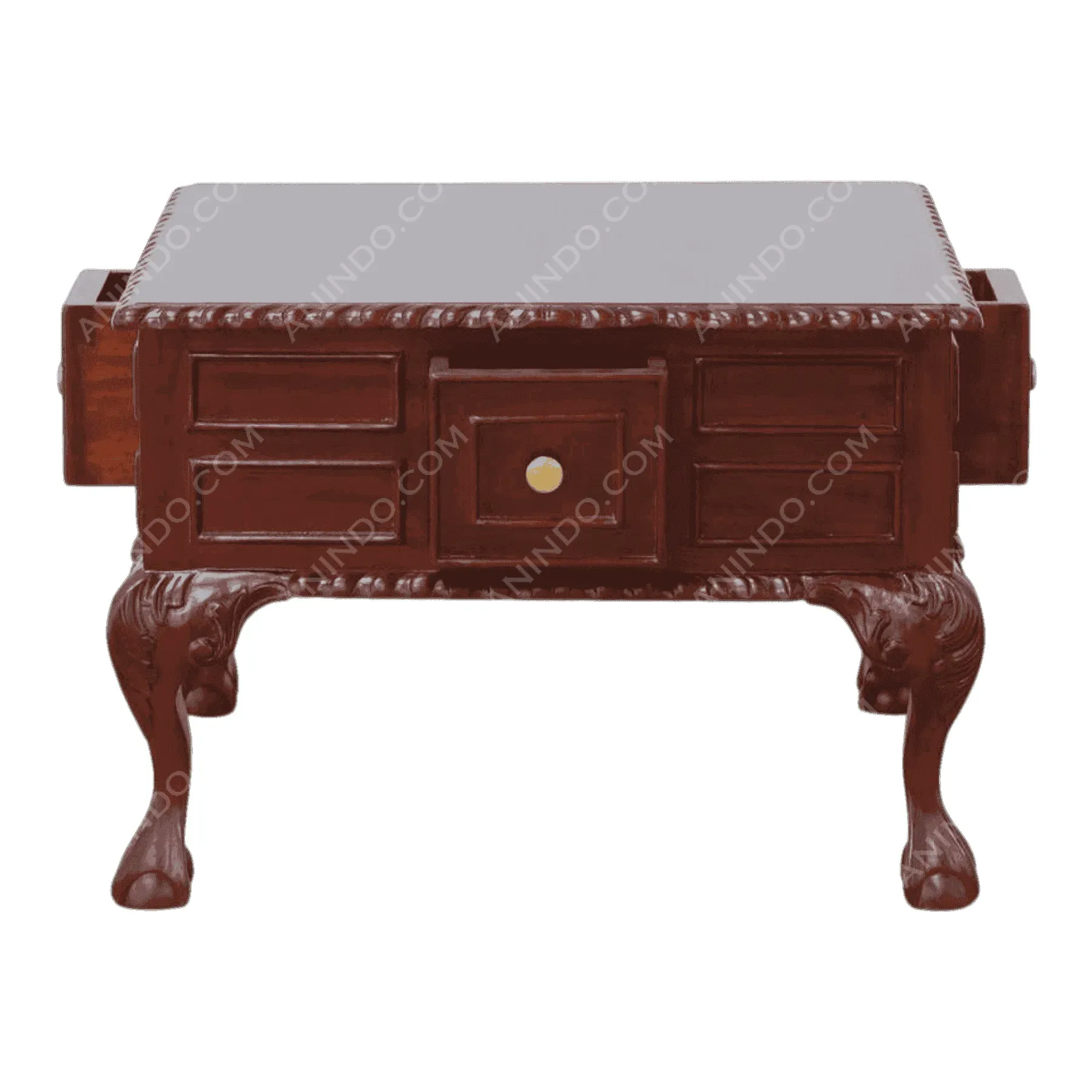 Primary Frame: Solid Mahogany or Cherry Wood | Joinery: Mortise & Tenon Carved Legs | Finish: Deep Red-Brown Stain with Satin Varnish | Upholster & Cushion: N/A
