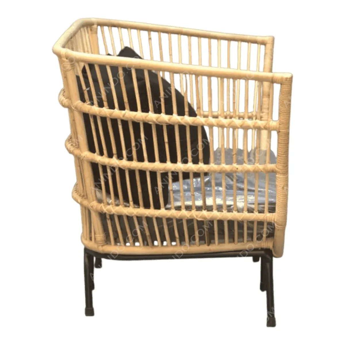 Primary Frame: Natural Rattan | Joinery: Bound Rattan | Finish: Natural | Upholster & Cushion: Black Fabric | Base: Steel