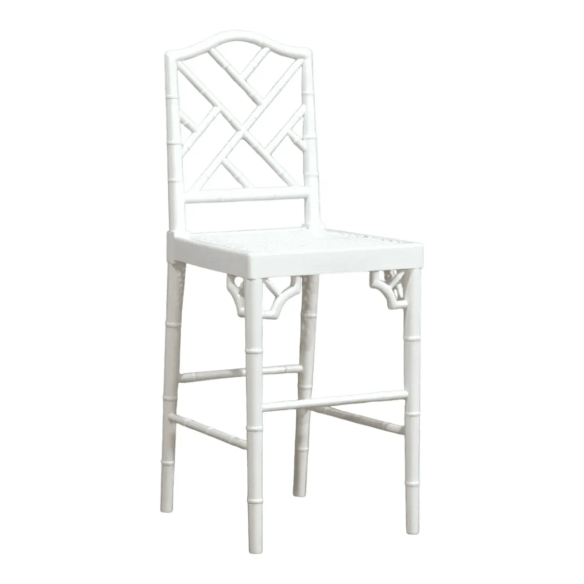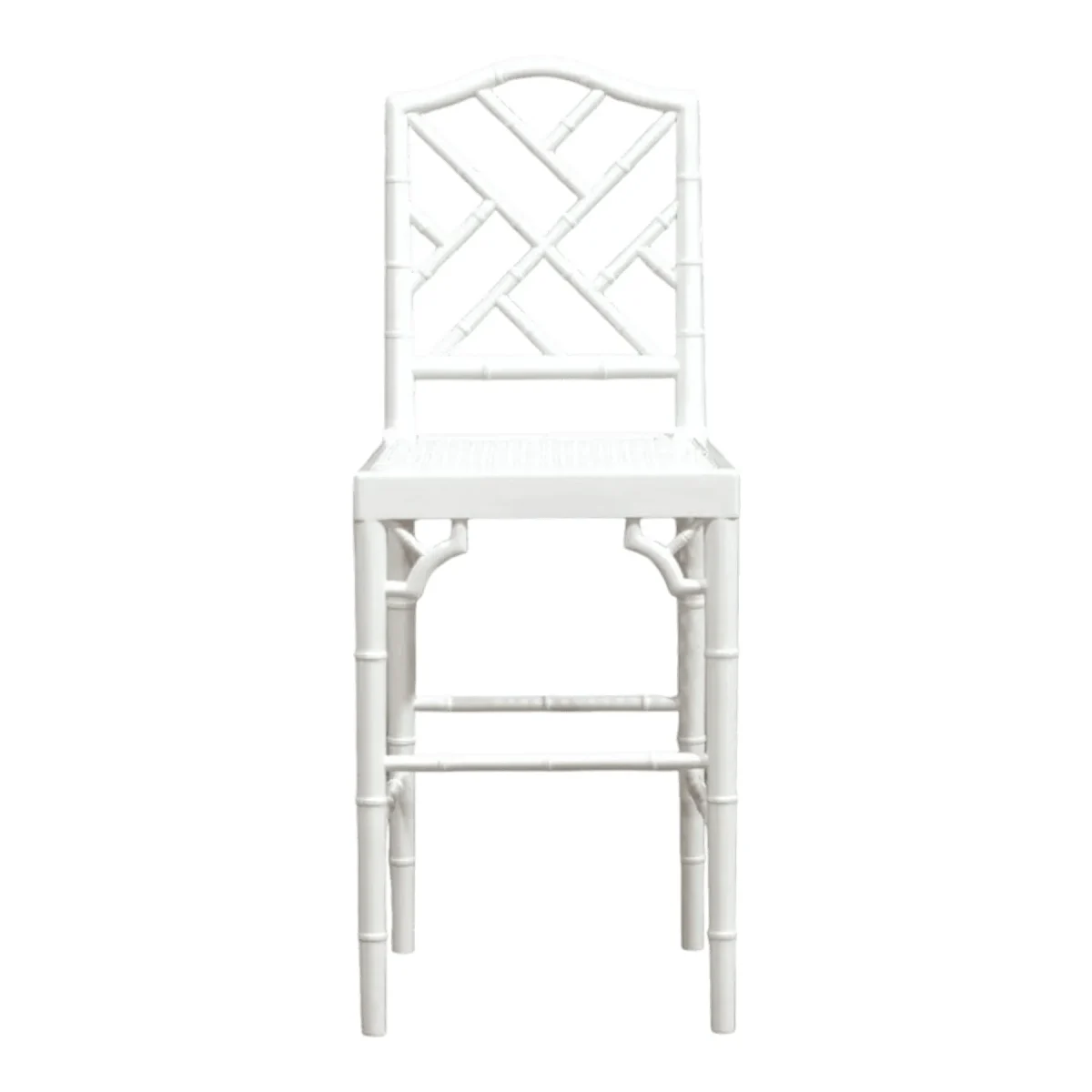Elevate your kitchen island or home bar with this stunning high-profile seating solution that radiates purity and style The elongated legs feature meticulous bamboo-style carving adding a touch of organic texture to the sleek white frame Its geometric backrest serves as a piece of functional art providing support while maintaining a sense of openness throughout the interior The hand-woven seat adds a layer of artisanal charm and breathable comfort perfect for morning coffees or evening cocktails Built with precision and finished in a luminous white this barstool is a testament to refined craftsmanship designed to endure as an heirloom piece in a modern luxury home