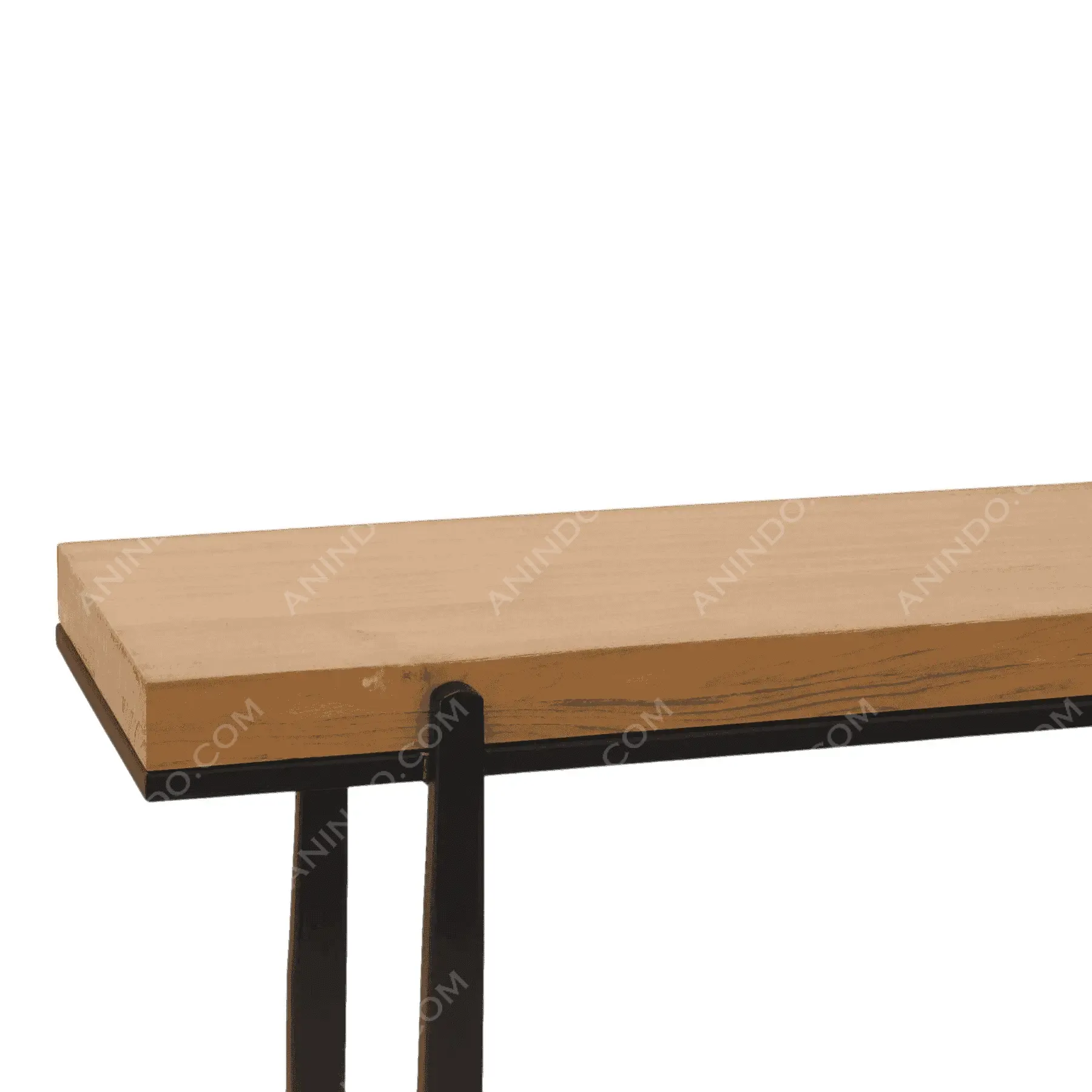 This console table is a perfect fusion of rustic warmth and sleek industrial design The minimalist piece features a thick, solid wood top in a natural finish, showcasing its beautiful, organic grain This warm top rests on a stark, simple metal base The base consists of two squared legs and a connecting stretcher, all finished in a dark, matte black This contrast between the natural Suar wood and the strong, dark metal creates a look that is both modern and timeless It’s an ideal piece for an entryway, hallway, or behind a sofa, offering a stylish surface without visual clutter