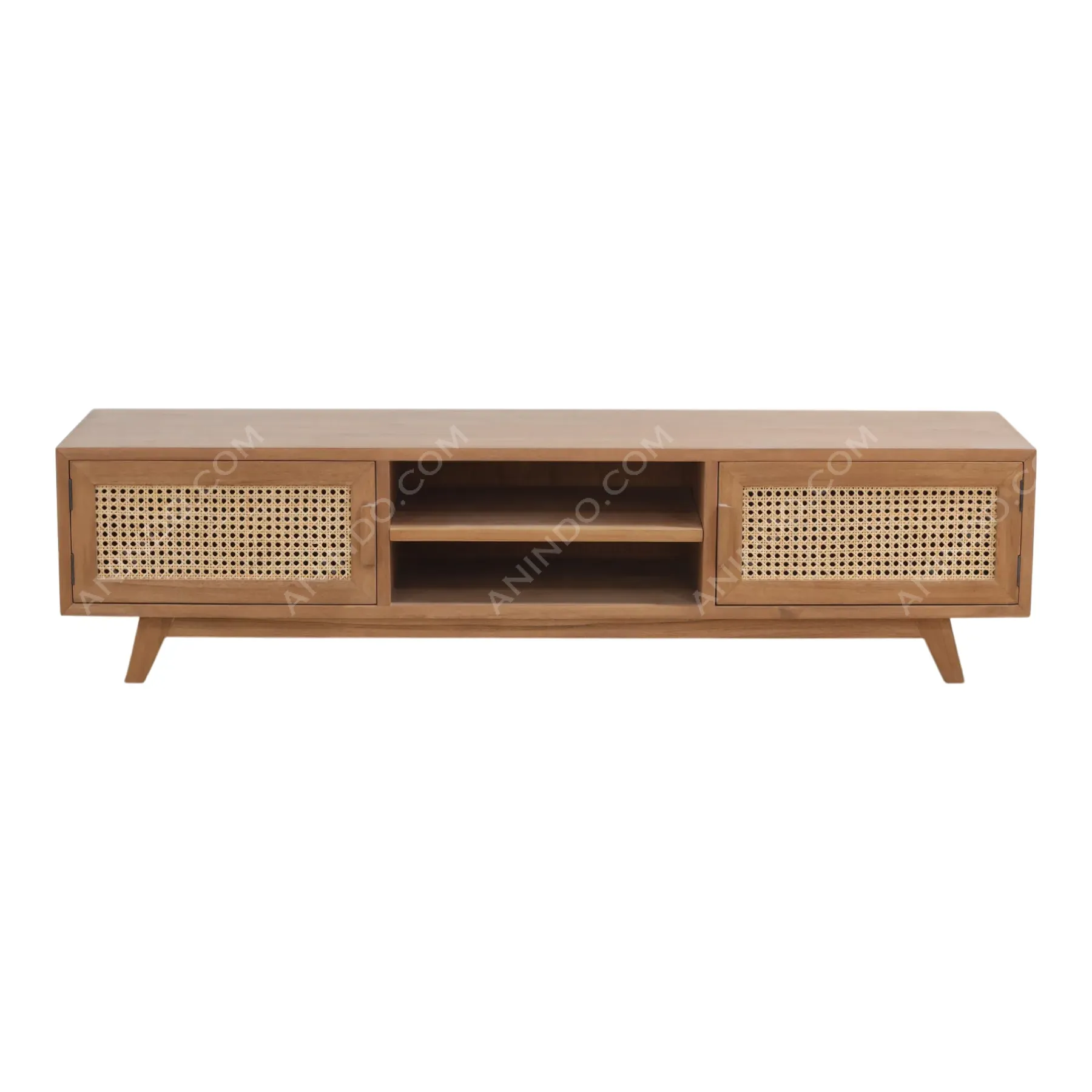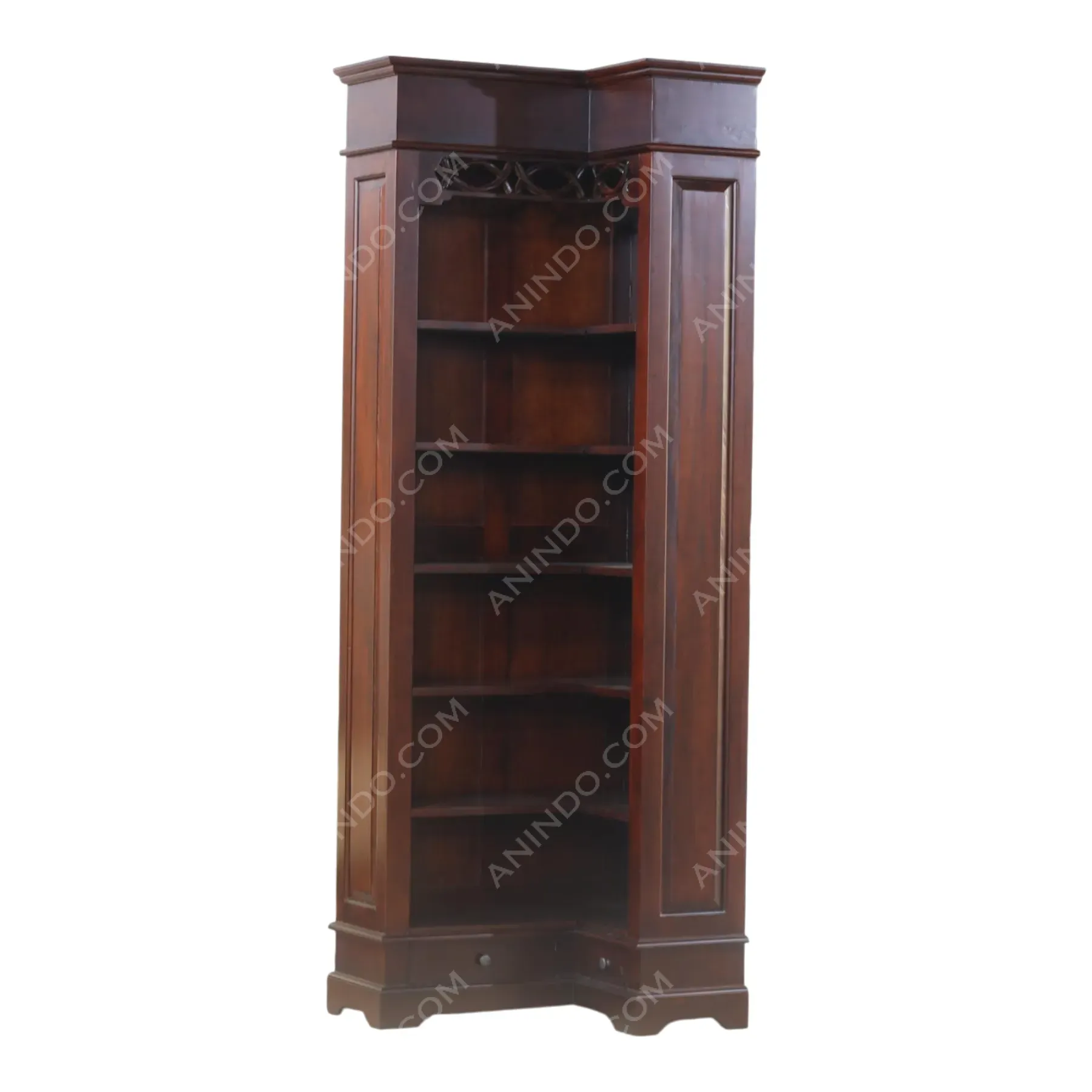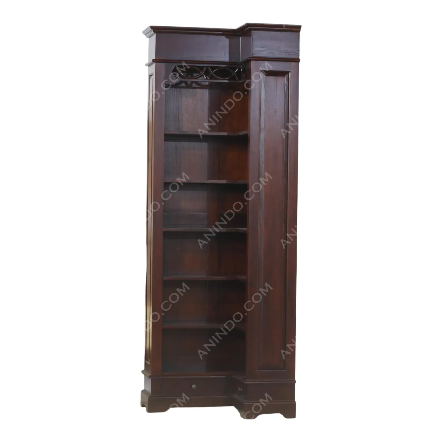 Primary Frame: Solid Teak Wood | Joinery: Traditional Frame | Finish: High-Gloss Wood Stain | Upholstery: Velvet (Polyester), High-Density Foam, Crystal Button Tufting.