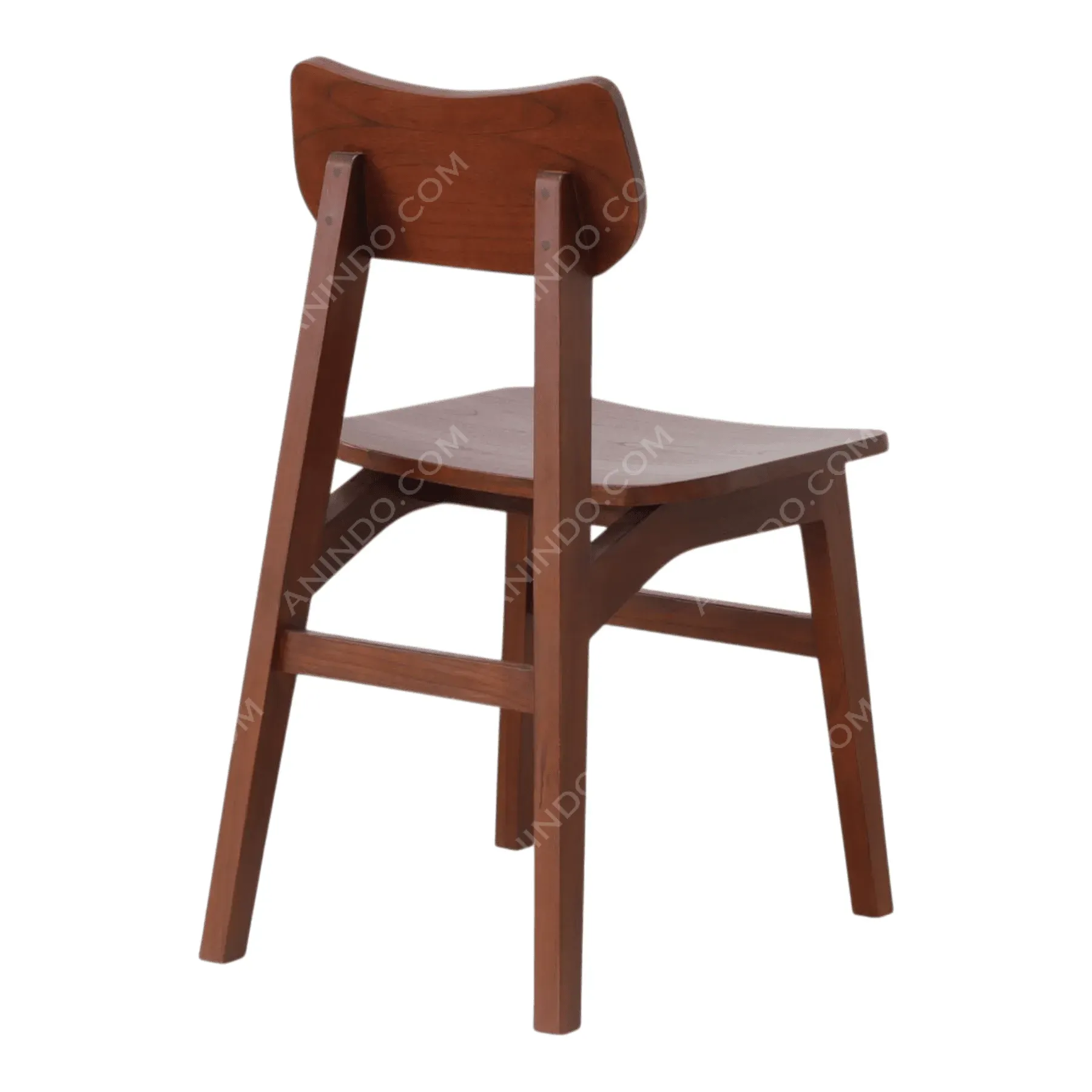 A perfect example of Mid-Century Modern functionalism, this dining chair is defined by its clean, flowing lines and comfortable, sculpted form. The backrest is gently curved and concave, providing ergonomic support, while the seat is subtly scooped. The entire piece is constructed from a rich, Mindy wood, showcasing the beauty of simple, unadorned material. Lightweight yet sturdy, this chair is ideal for a contemporary or transitional dining setting that values elegant simplicity and a smooth, polished finish.