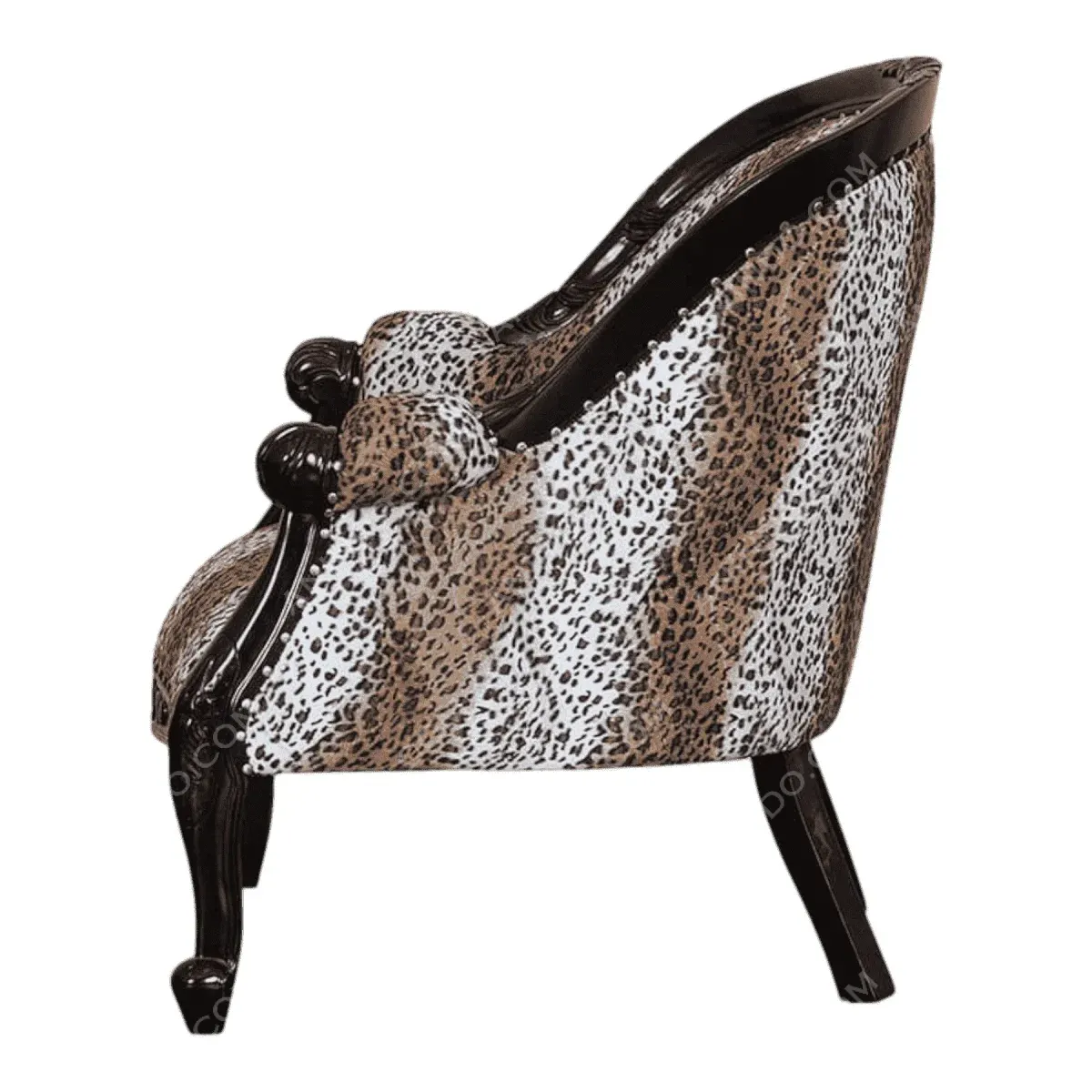 Command attention with a piece that defines bold sophistication and timeless allure This statement accent chair seamlessly blends classic silhouettes with a provocative animal print pattern designed for those who appreciate dramatic flair Crafted with meticulous attention to detail the curved high back offers unparalleled comfort while providing a striking aesthetic anchor for any refined space Whether placed in a reading nook or as a centerpiece in your formal lounge this chair invites you to lounge in absolute luxury The deep polished frame creates a sharp contrast against the plush upholstery elevating your interior design to a gallery level status Experience the intersection of comfort and confidence with a design that transforms a standard room into an expressive sanctuary of personal style