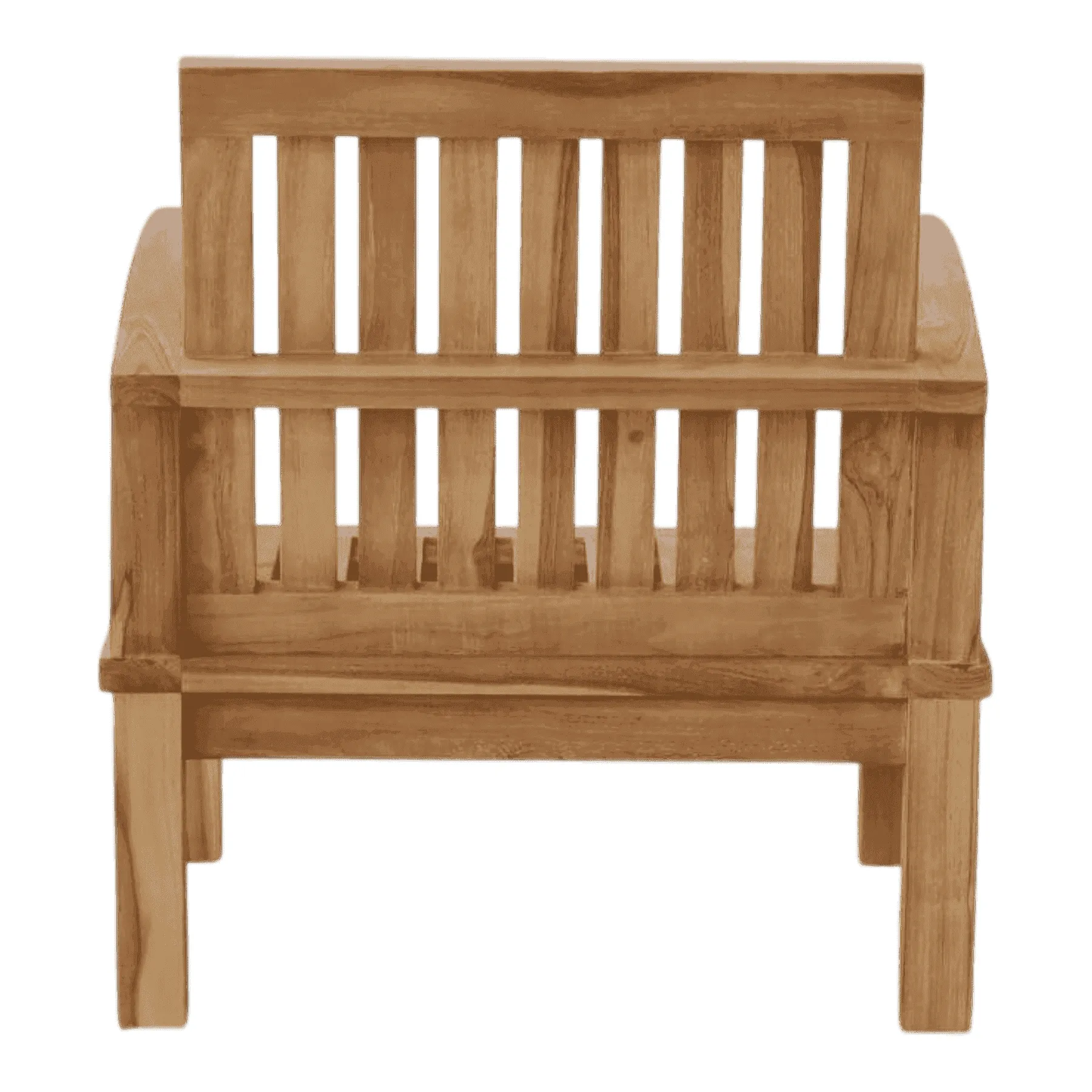 Primary Frame: Grade A Teak Wood | Joinery: Mortise and Tenon | Finish: Fine-Sanded Natural Teak | Upholster & Cushion: N/A