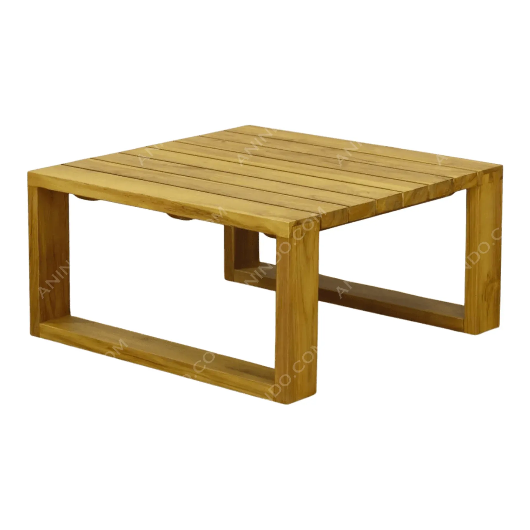 This coffee table is a perfect example of modern, functional, and durable design Crafted entirely from premium, solid teak, it is built to withstand the elements with style Its slatted top is a classic outdoor feature, adding visual texture while allowing for easy water drainage The frame is a clean, rectangular box with inset legs, a subtle design choice that gives the substantial table a lighter, more “floating” appearance It’s a timeless and practical centerpiece for any patio or sunroom