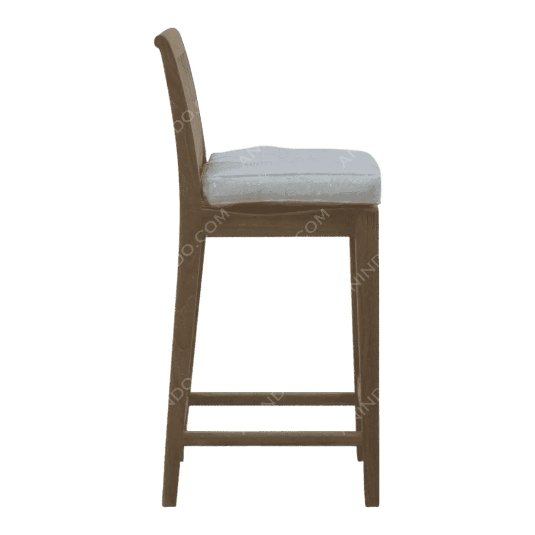 Primary Frame: Teak Wood Joinery: Mortise and Tenon Finish: Natural Teak finish Upholster & Cushion: Neutral Grey/White Fabric