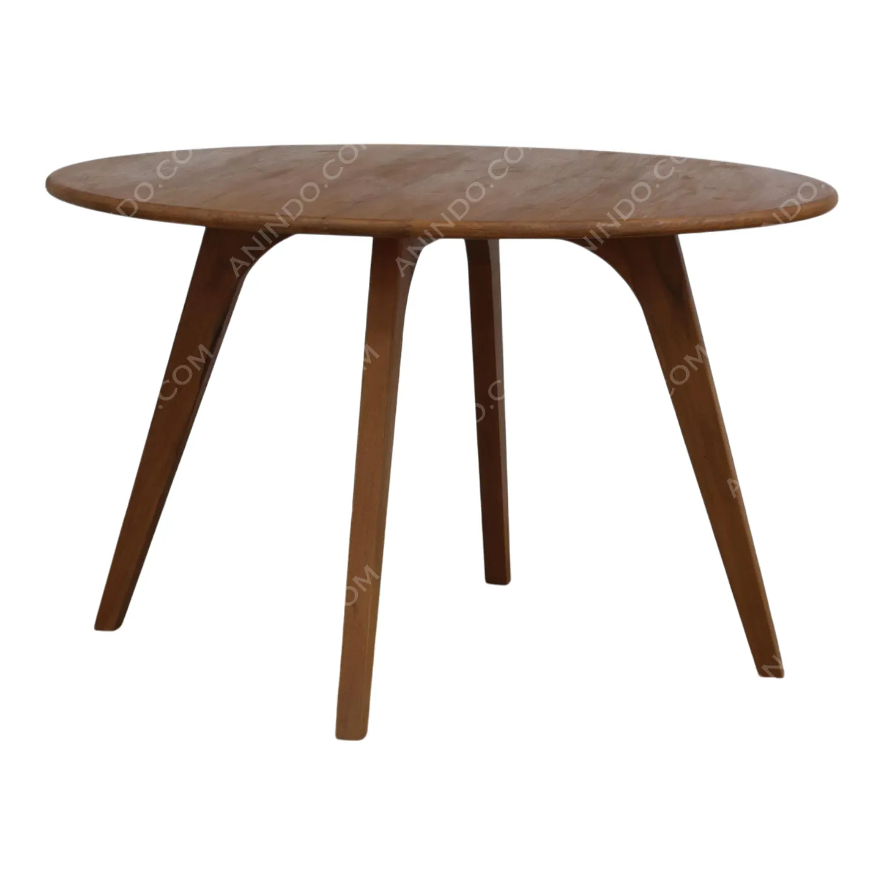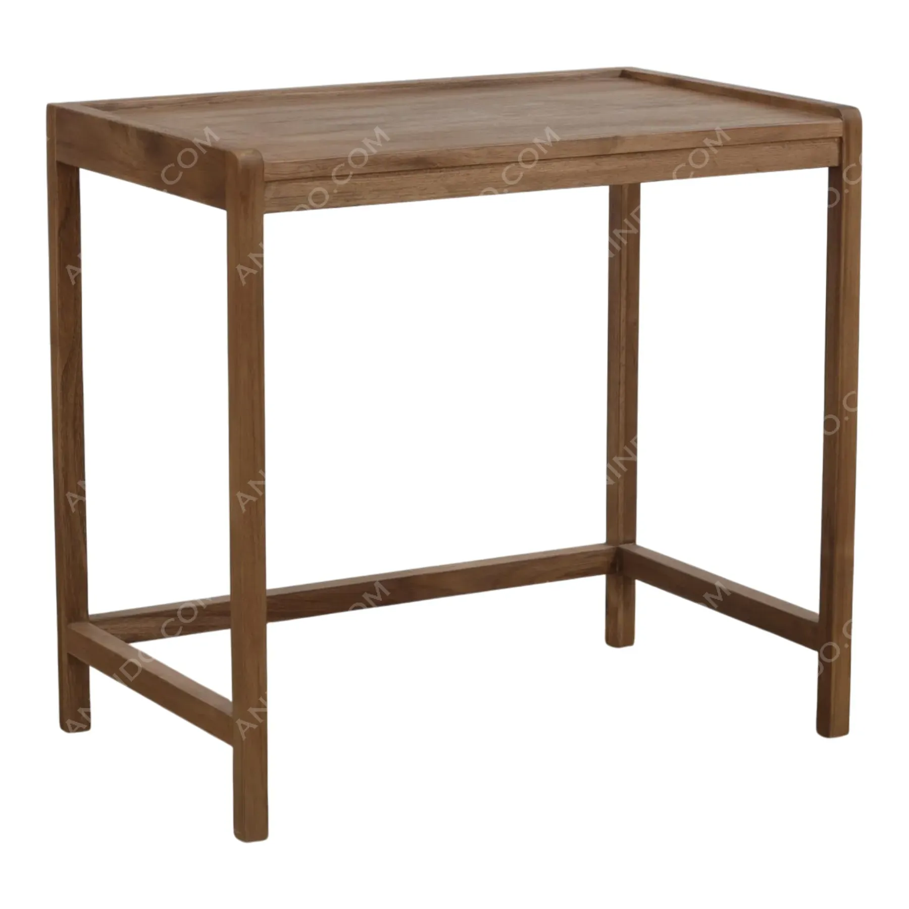 A warm medium-brown teak wood frame paired with a deep natural brown woven rope