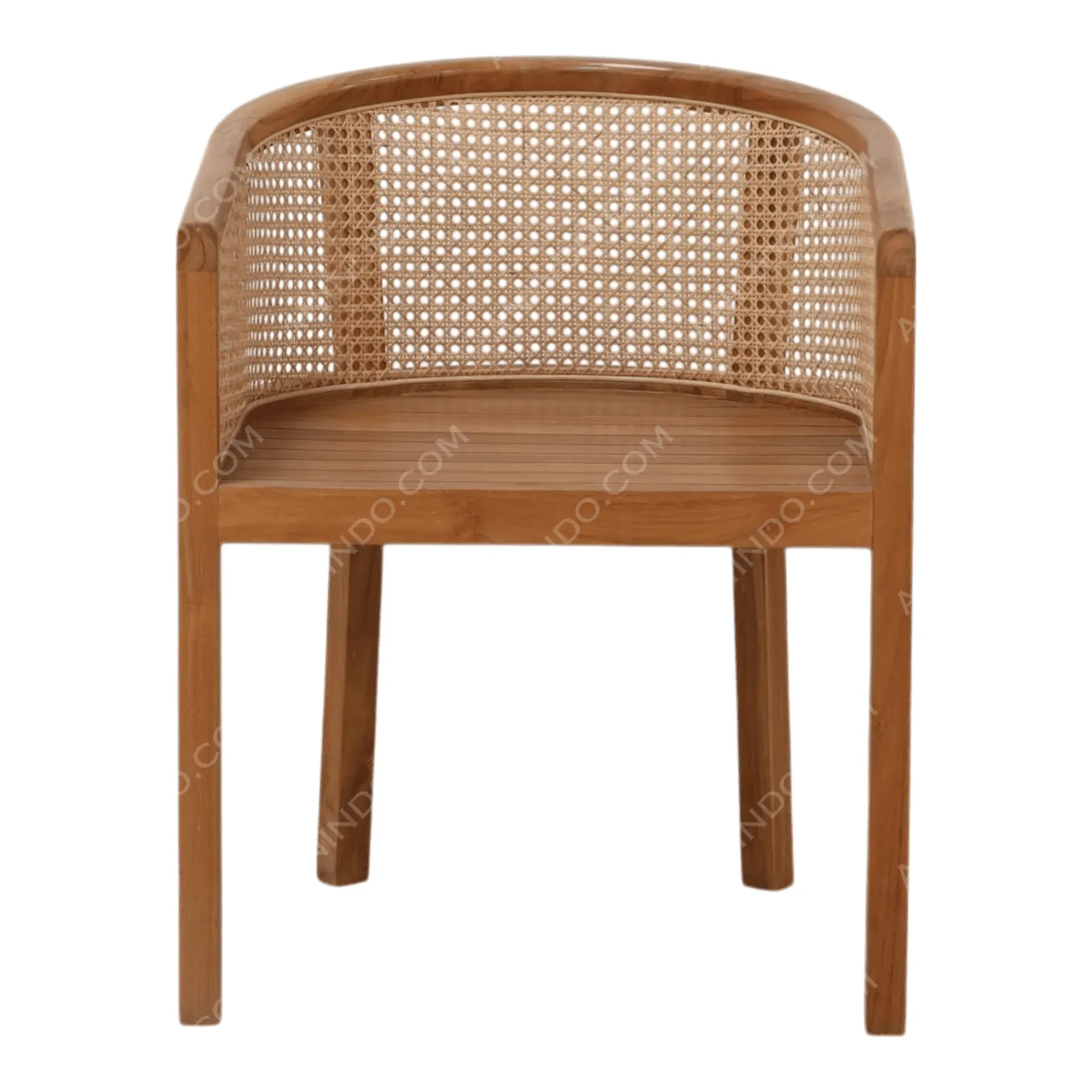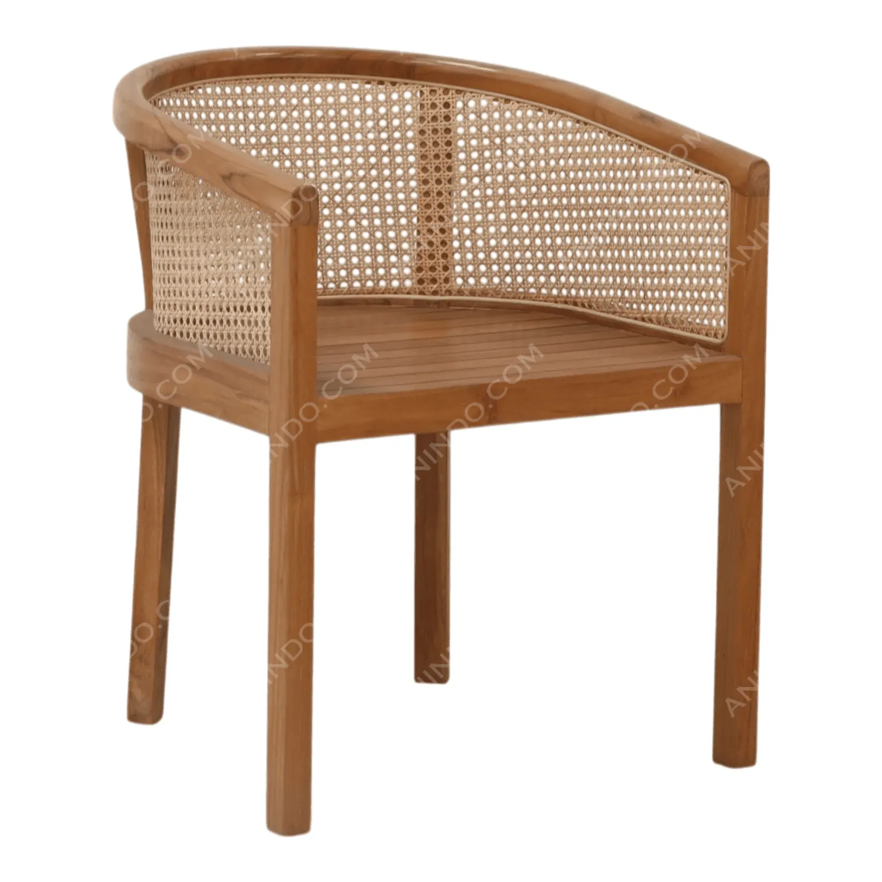 Primary Frame: Solid Teak Wood | Joinery: Mortise & Tenon | Finish: Natural Teak Oil | Upholster & Cushion: Woven All-Weather Rope (Brown)