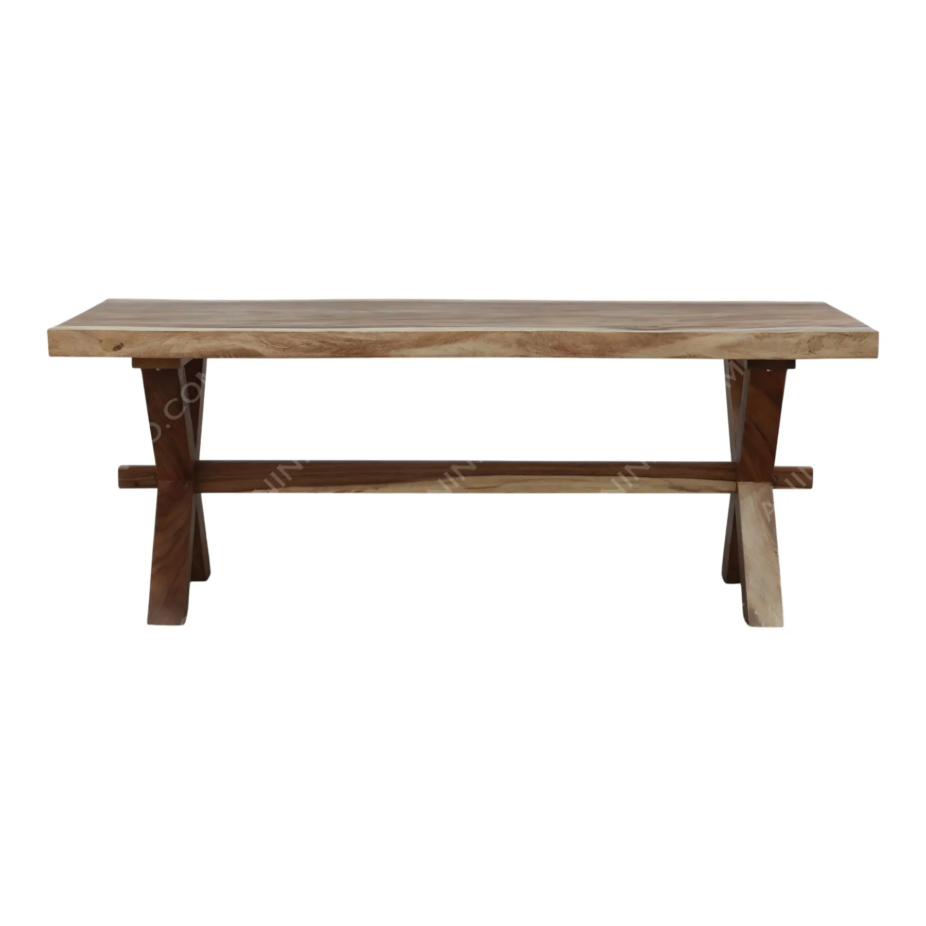A warm medium-brown teak wood frame paired with a deep natural brown woven rope