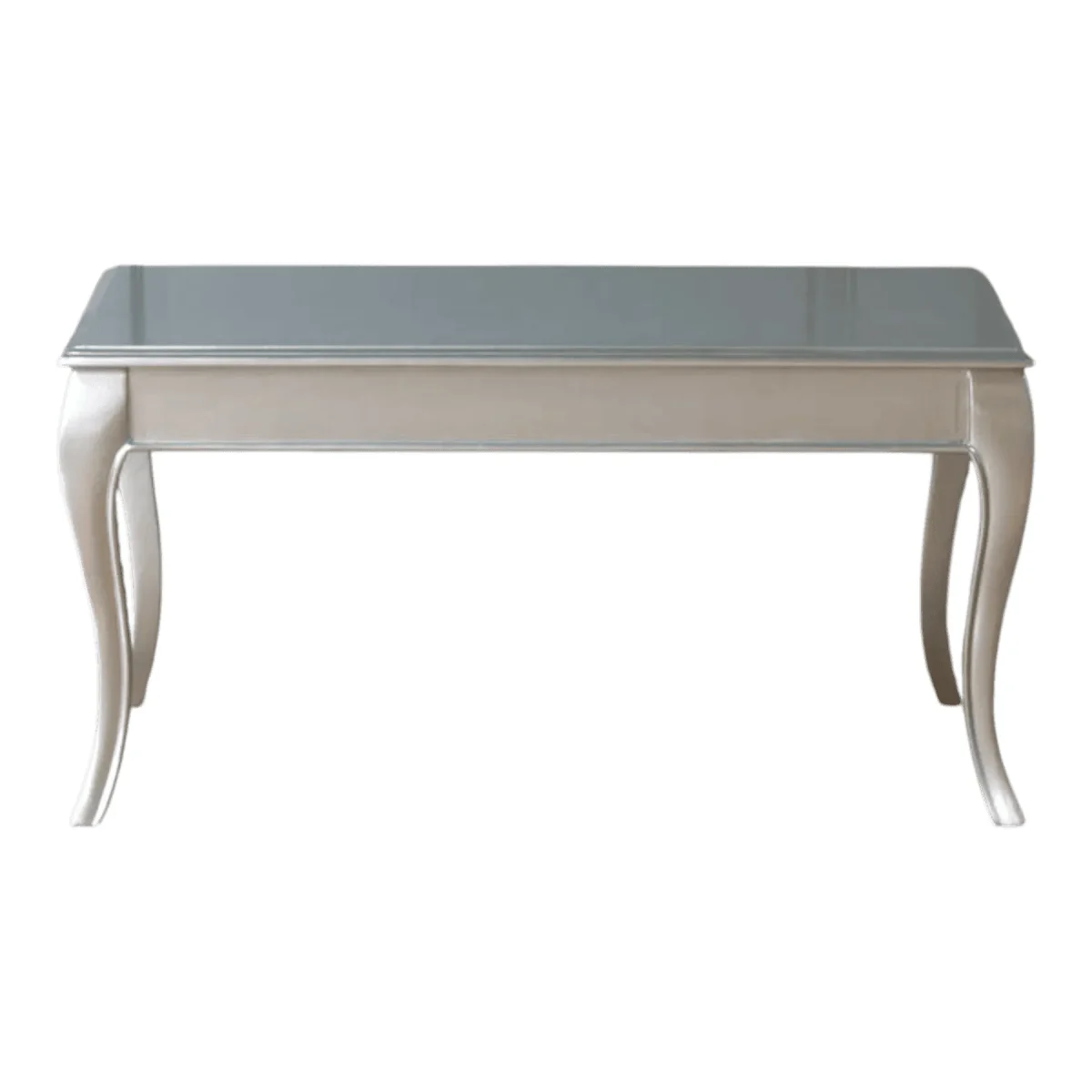 Introduce a touch of cool cinematic glamour to your living space with this sleek statement piece The table features a striking metallic finish that captures and diffuses light creating a luminous focal point in any room Its minimalist rectangular top is balanced by elegantly tapered cabriole legs offering a subtle nod to classic furniture design while remaining firmly rooted in modern luxury The smooth reflective surface is ideal for displaying curated art books or serving as a chic stage for evening cocktails This table is designed for the homeowner who appreciates clean lines and high-impact finishes transforming a functional item into a piece of jewelry for the home that complements both velvet sofas and modern minimalist decor