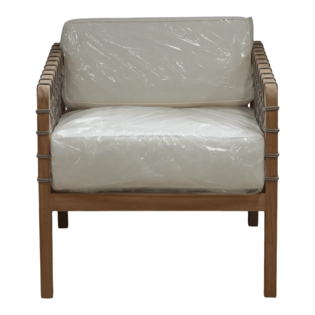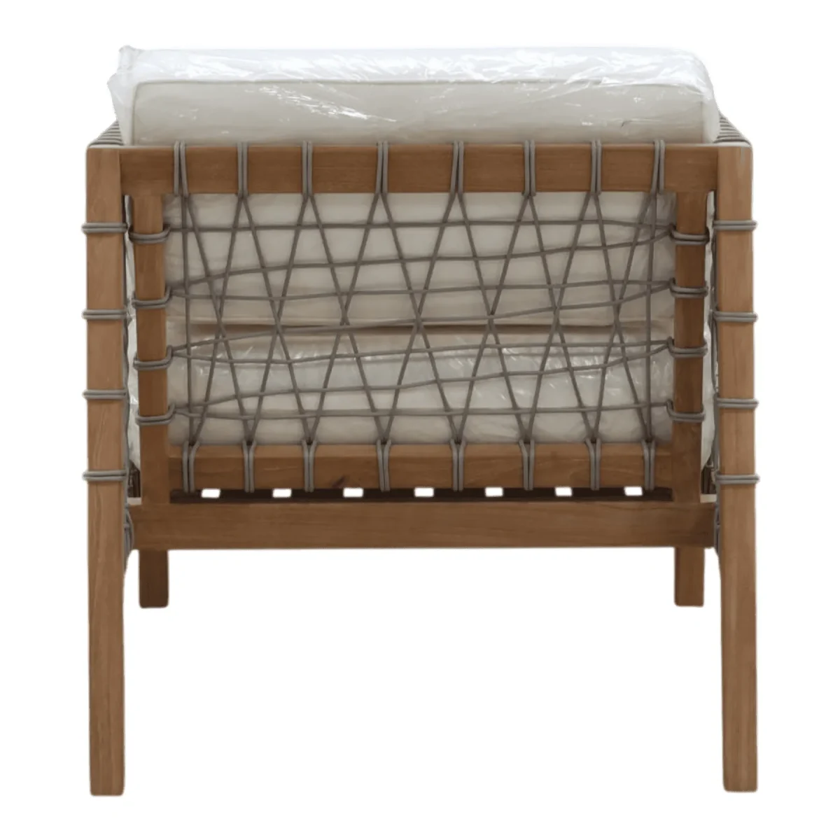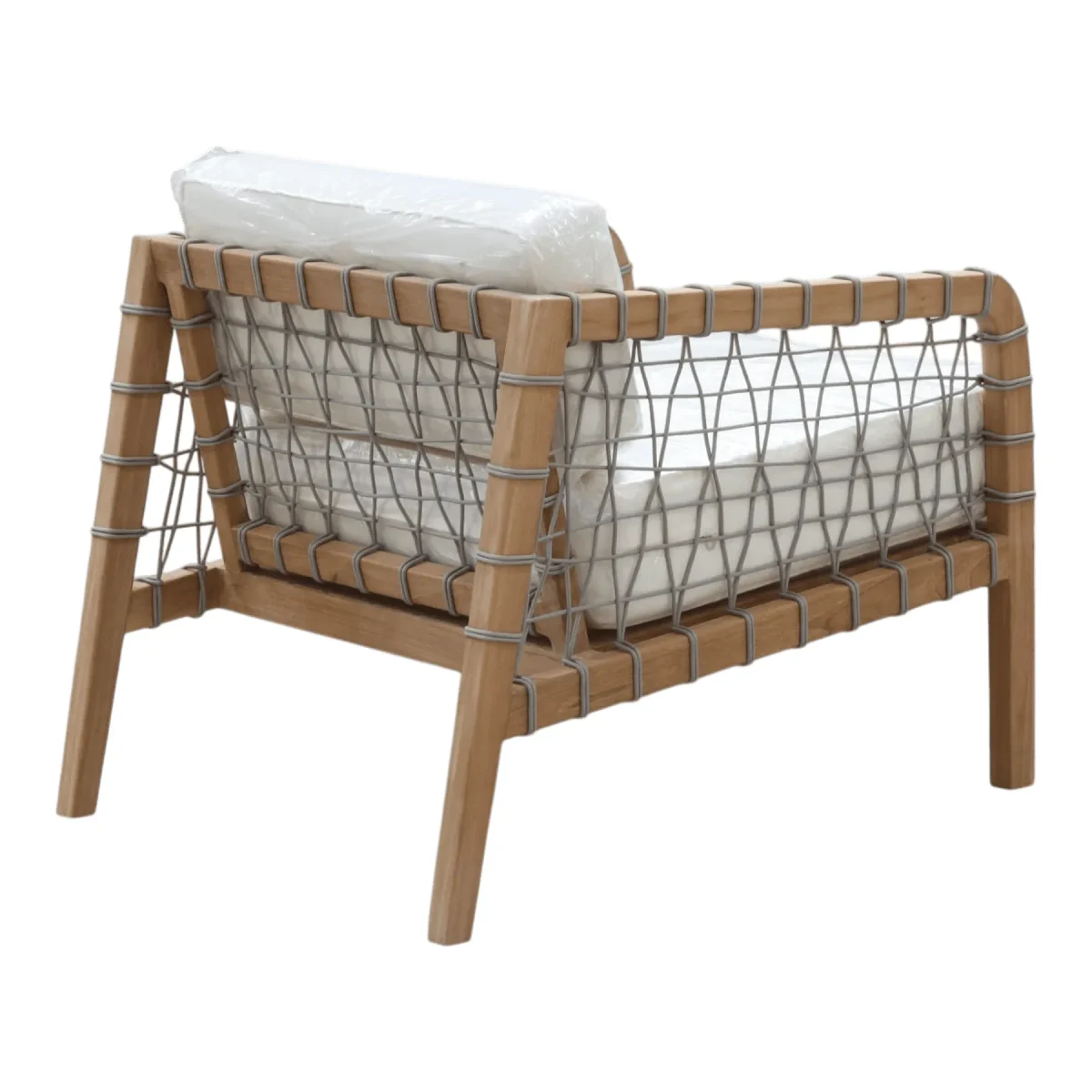 Natural Honey Teak with Soft Cream Upholstery and Grey Rope Accents