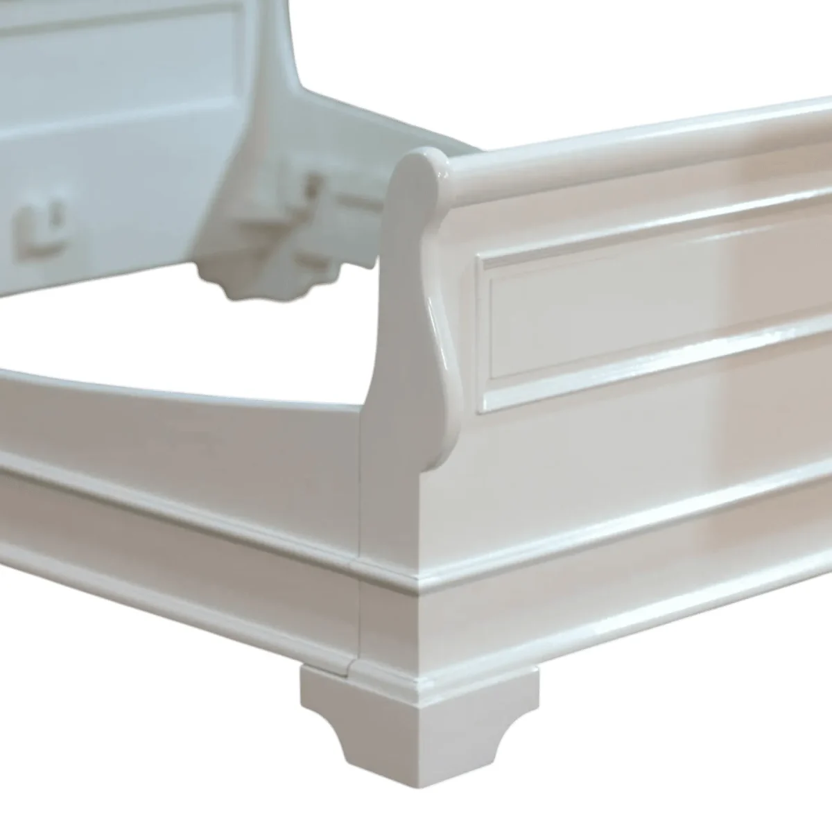Embrace the ultimate expression of opulence with this intricately carved masterpiece that transforms any bedroom into a palatial sanctuary its grand silhouette is defined by sweeping curves and flamboyant rococo flourishes that capture the essence of high-society heritage and historical grandeur every millimeter of this bedstead showcases expert hand-carved details including floral motifs and scrolled edges that invite tactile appreciation and visual wonder the luminous white finish provides a refreshing contemporary breath to the traditional design allowing it to blend seamlessly into ethereal romantic or classical interiors built with the longevity of an heirloom this piece serves as both a functional sleeping platform and a dramatic sculptural statement that anchors your home with undeniable prestige and artisanal soul