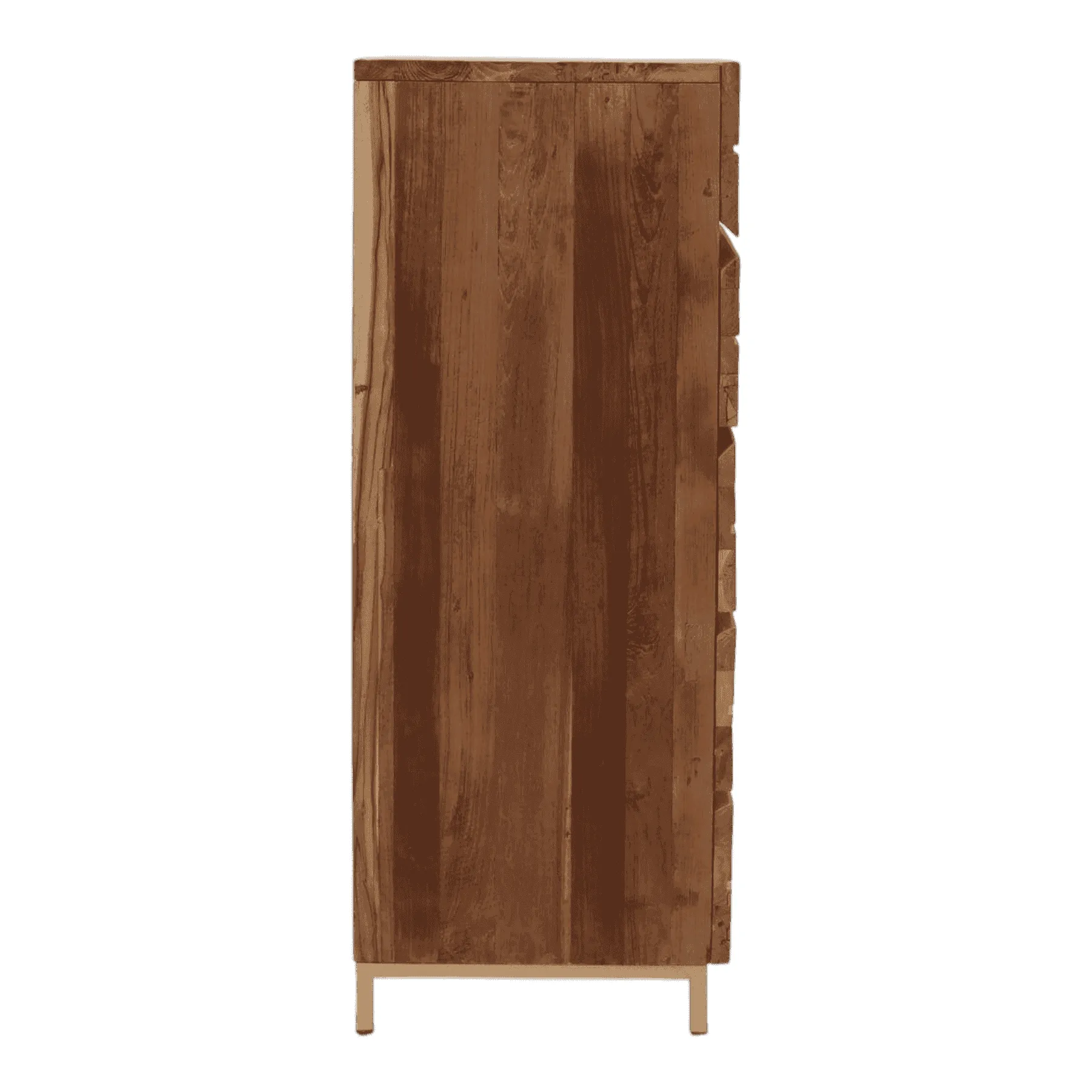 Primary Frame: Solid Teak Slats on Plywood/MDF | Joinery: Case construction | Finish: Medium Brown Varnish | Upholster & Cushion: N/A (Metal or wood legs)