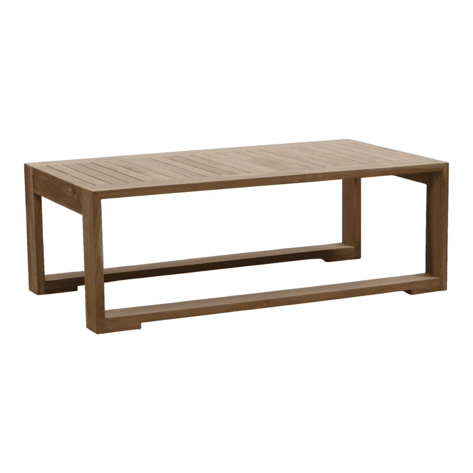 This coffee table is a masterpiece of modern, architectural design Its slatted top gives it a light, airy feel, perfect for outdoor or coastal-inspired spaces The defining feature is its “loop” frame, where the legs and frame support are one continuous, flowing piece This creates a clean, sophisticated, and uninterrupted silhouette in beautiful natural teak