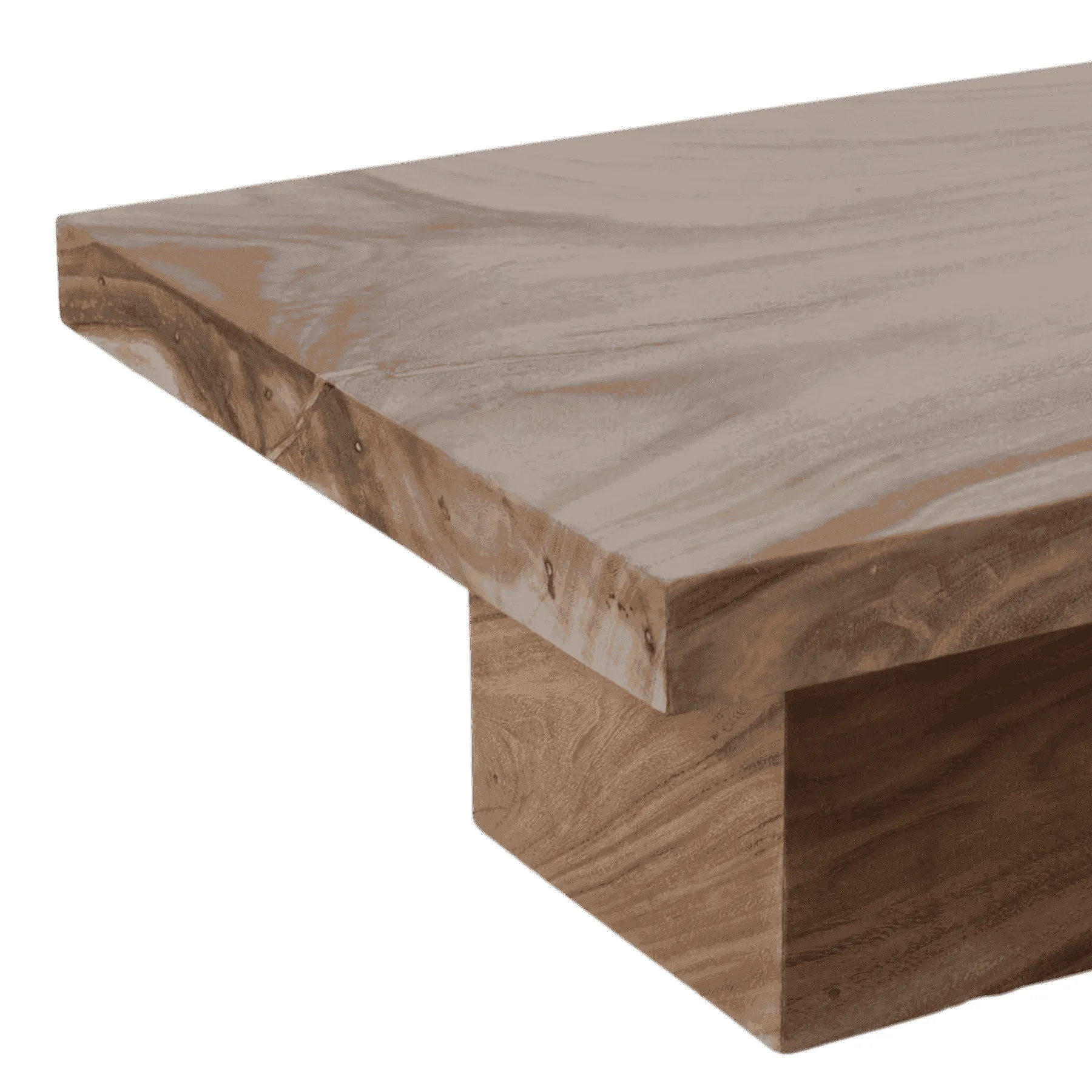 Primary Frame: Solid Suar Wood (Live Edge) | Joinery: N/A (Floating mount) | Finish: Natural Matte Oil | Upholster & Cushion: N/A