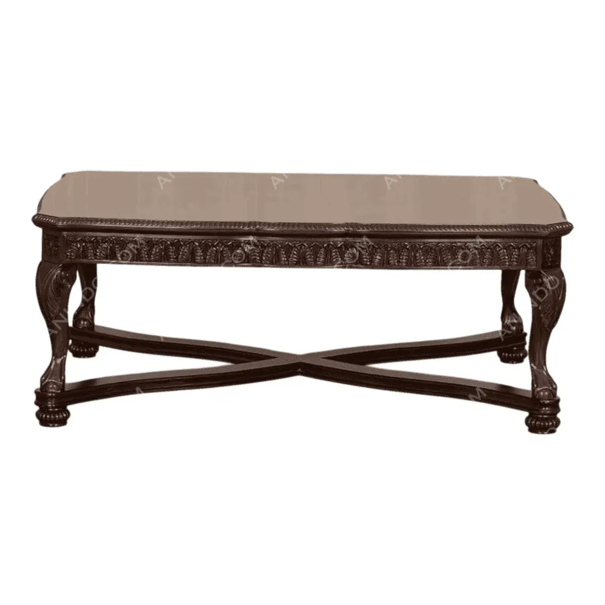 Transform your living space with this exquisite coffee table designed to be the anchor of sophisticated gatherings Its silhouette exudes timeless grace featuring intricate hand-carved detailing along the apron that whispers of classical artistry The deep rich finish provides a warm welcoming aesthetic that grounds any room while the elegant cabriole legs paired with a sturdy cross-stretcher offer both structural integrity and visual allure This piece is not merely furniture but an investment in refined living crafted for those who appreciate the intersection of historical grandeur and modern comfort Perfectly proportioned to host intimate coffee mornings or vibrant evening conversations it serves as a testament to impeccable taste and enduring style Elevate your home atmosphere with a centerpiece that balances opulent design with functional elegance creating a sanctuary of luxury you will enjoy for years to come