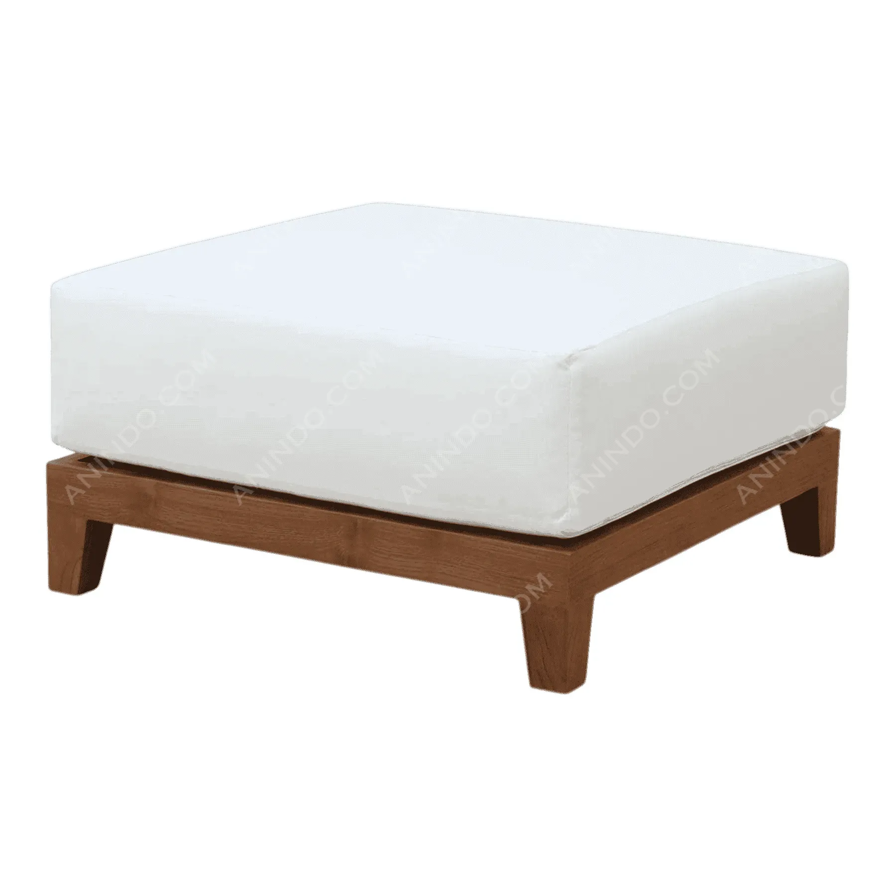 This minimalist ottoman is a study in clean lines and elegant contrasts Its thick, generously plush white cushion offers a comfortable and inviting surface, perfect for resting your feet or providing extra seating This soft top rests on a simple, sturdy base crafted from solid teak wood, whose warm, natural grain provides a beautiful organic counterpoint to the crisp white fabric A versatile and timeless piece, it’s an essential companion to a modern sofa, both indoors and out
