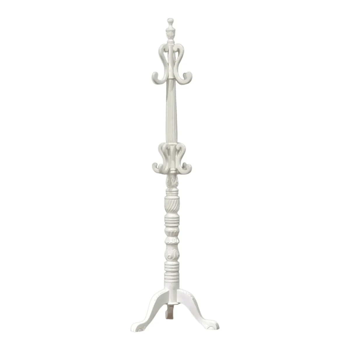 This statuesque coat rack is a beautiful functional sculpture designed to organize your entryway with style Standing tall on a sturdy tripod base it features multiple tiers of gracefully curved hooks that can accommodate hats coats scarves and bags with ease Every inch of the central pillar is detailed with traditional turnings and delicate carvings finished in a soft white that complements any wall color The vertical design is perfect for tight spaces where a traditional closet may not fit while the ornate top finial adds a crowning touch of elegance This piece is an essential for any home that values both order and the welcoming charm of classic Victorian-inspired decor