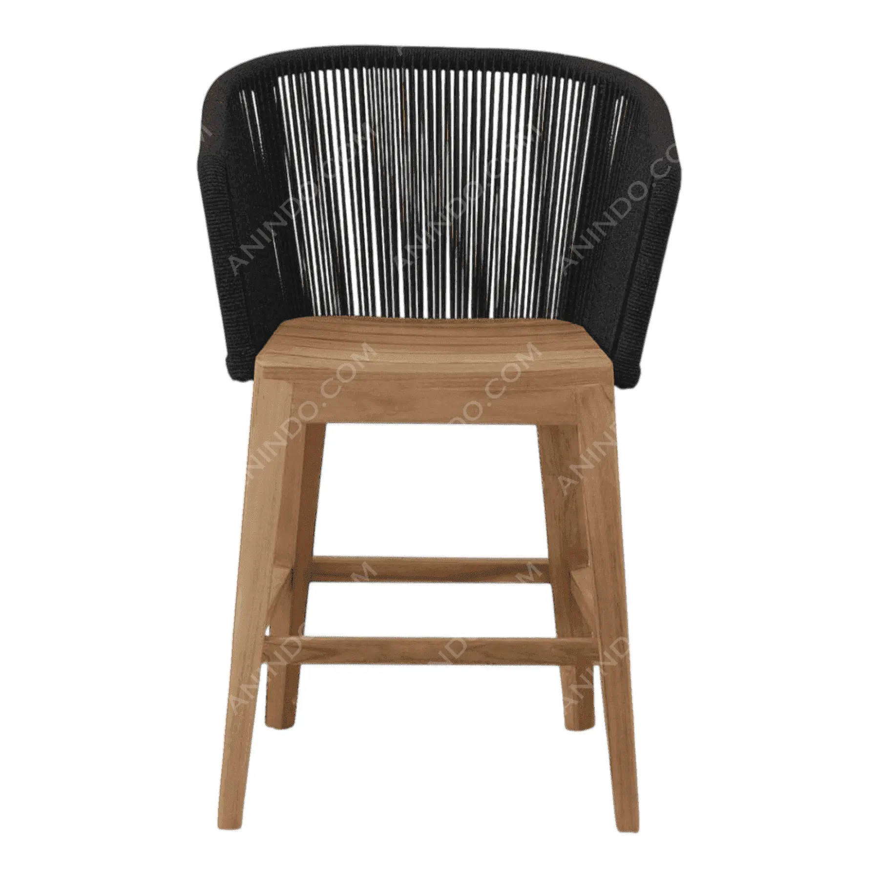 Primary Frame: Solid Teak Wood | Joinery: Mortise & Tenon with X-stretcher | Finish: Natural Teak Oil | Upholster & Cushion: Woven All-Weather Rope (Matte Black)
