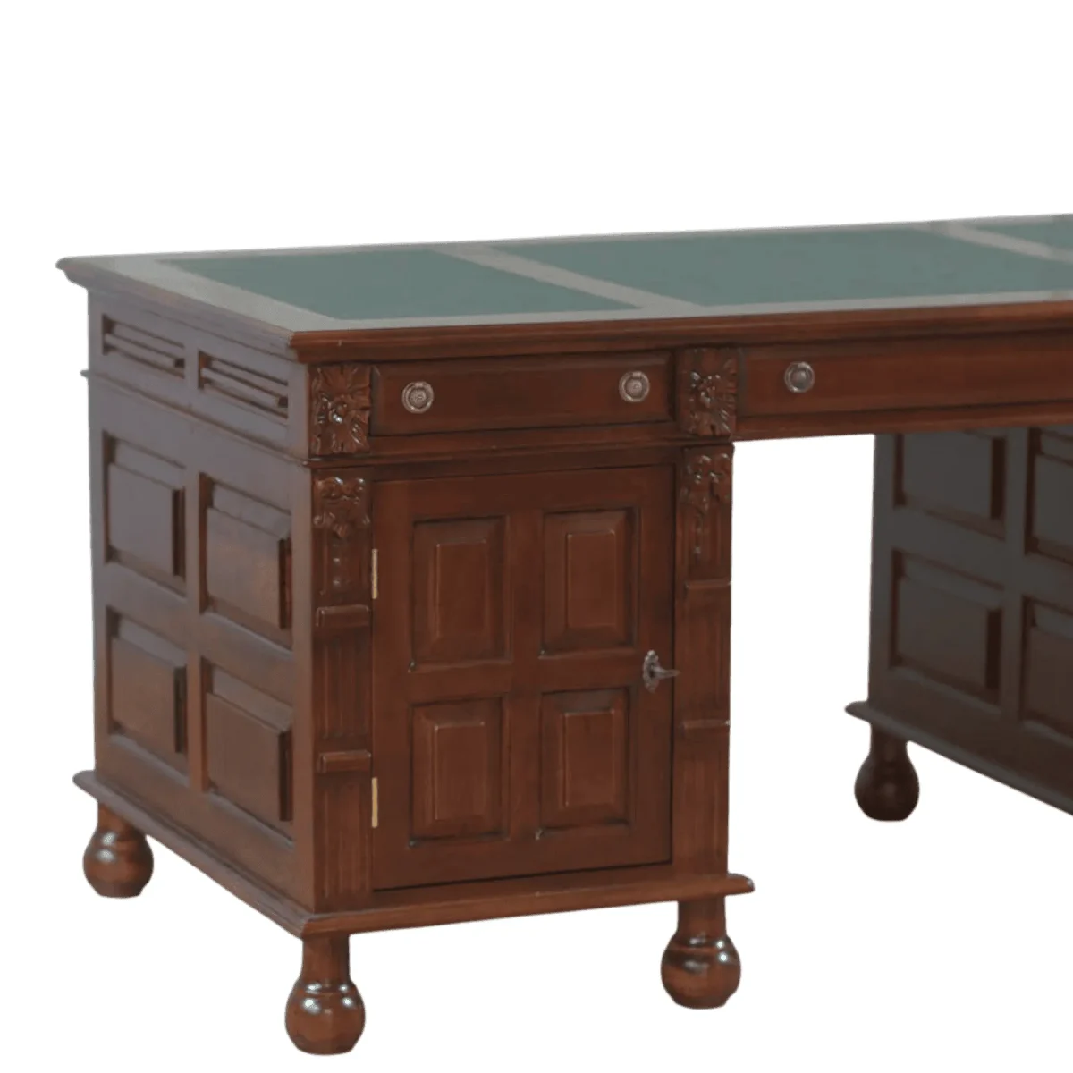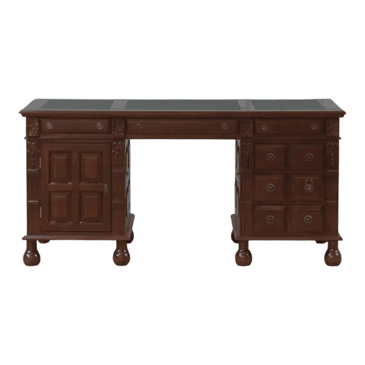 Imagine a workspace that commands respect and inspires unparalleled productivity while serving as the anchor for your professional sanctuary Crafted with the precision of master artisans this mahogany masterpiece features a deep espresso finish that highlights the natural dance of wood grains across its expansive surface Every drawer glides with a silent grace offering storage for your most vital documents and personal effects while the inset leather top provides a tactile luxury that makes every handwritten note feel like a historical decree This is not merely furniture but a legacy piece designed for those who navigate the complexities of leadership from the comfort of their home office or private study Elevate your daily rituals and surround yourself with the enduring strength of traditional craftsmanship that promises to remain a focal point of your interior landscape for decades to come