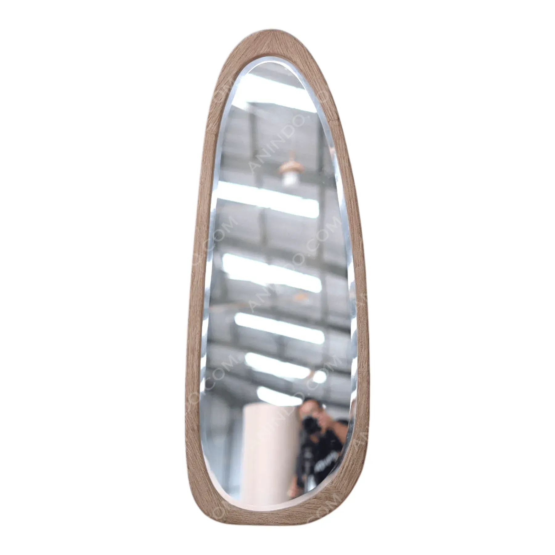A captivating accent for the modern home, the Oculus Mirror plays with light and perception This unique piece features a distinct convex or ‘fisheye’ mirror, which gathers the room into a wide, distorted, and artistic reflection The glass is set within a simple, ultra-thin frame of natural Teak wood, which adds a touch of organic warmth without distracting from the mirror’s special effect This piece is less a tool for grooming and more a piece of wall art, designed to create a focal point, bounce light in interesting ways, and add a sense of intrigue to any space