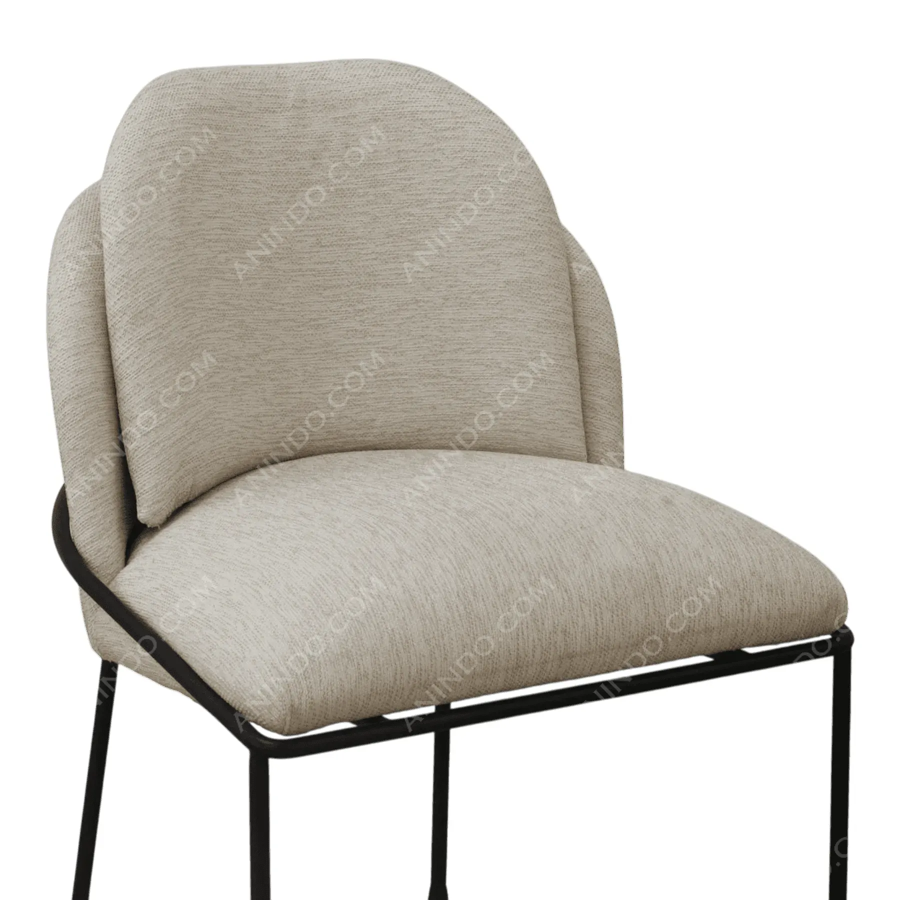 This chair is the epitome of modern comfort Its design features a slim, minimalist black metal frame that provides a light, airy foundation In striking contrast, the seat and back are comprised of two oversized, cloud-like cushions, upholstered in a soft, light-beige fabric The back cushion has a gentle curve, inviting you to lean back and relax This piece combines industrial simplicity with plush, enveloping softness, making it a perfect accent chair for a contemporary living room or bedroom