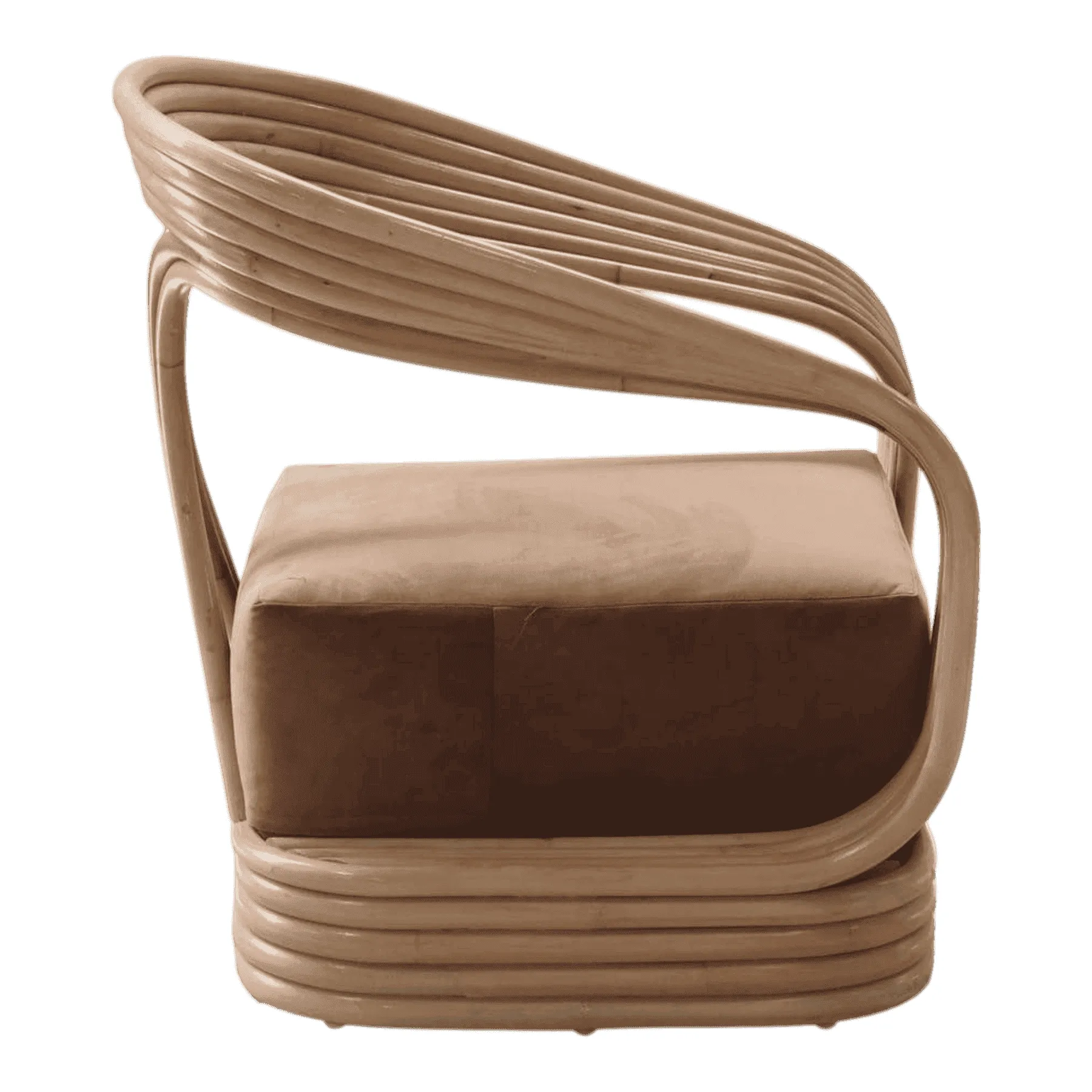 This design is a nod to 1970s and 80s rattan furniture, characterized by bold, curved forms and the use of rattan as both structure and ornament