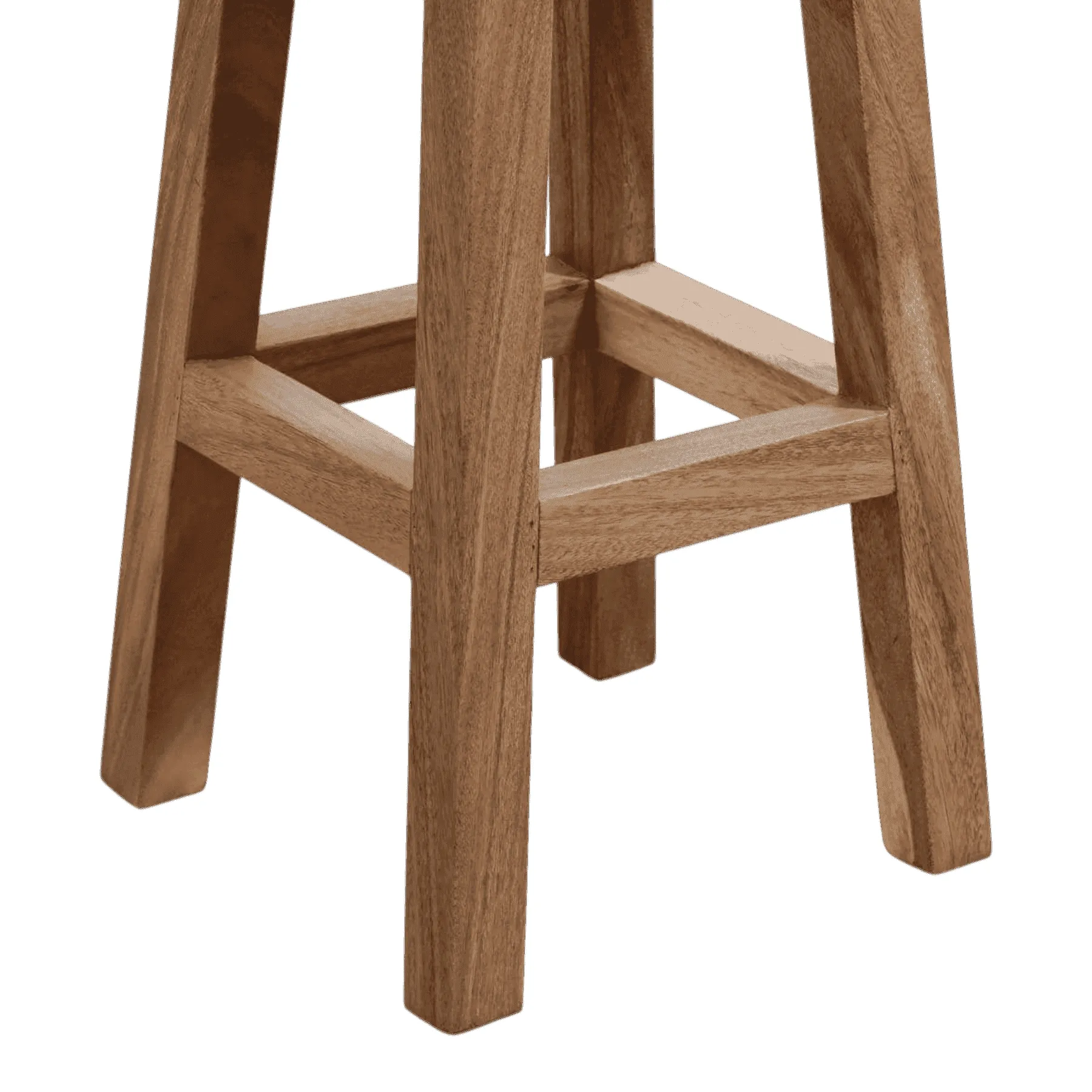 Primary Frame: Solid Teak Wood | Joinery: Mortise and Tenon, stretchers | Finish: Medium Brown Varnish | Upholster & Cushion: N/A