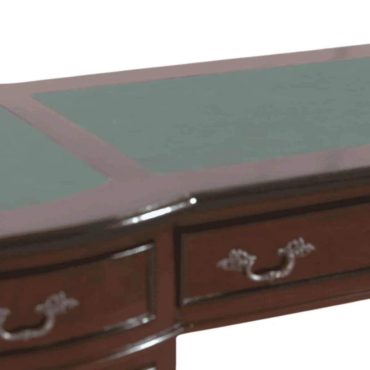 Deep Mahogany with Forest Green Inlays and Burnished Bronze Pulls