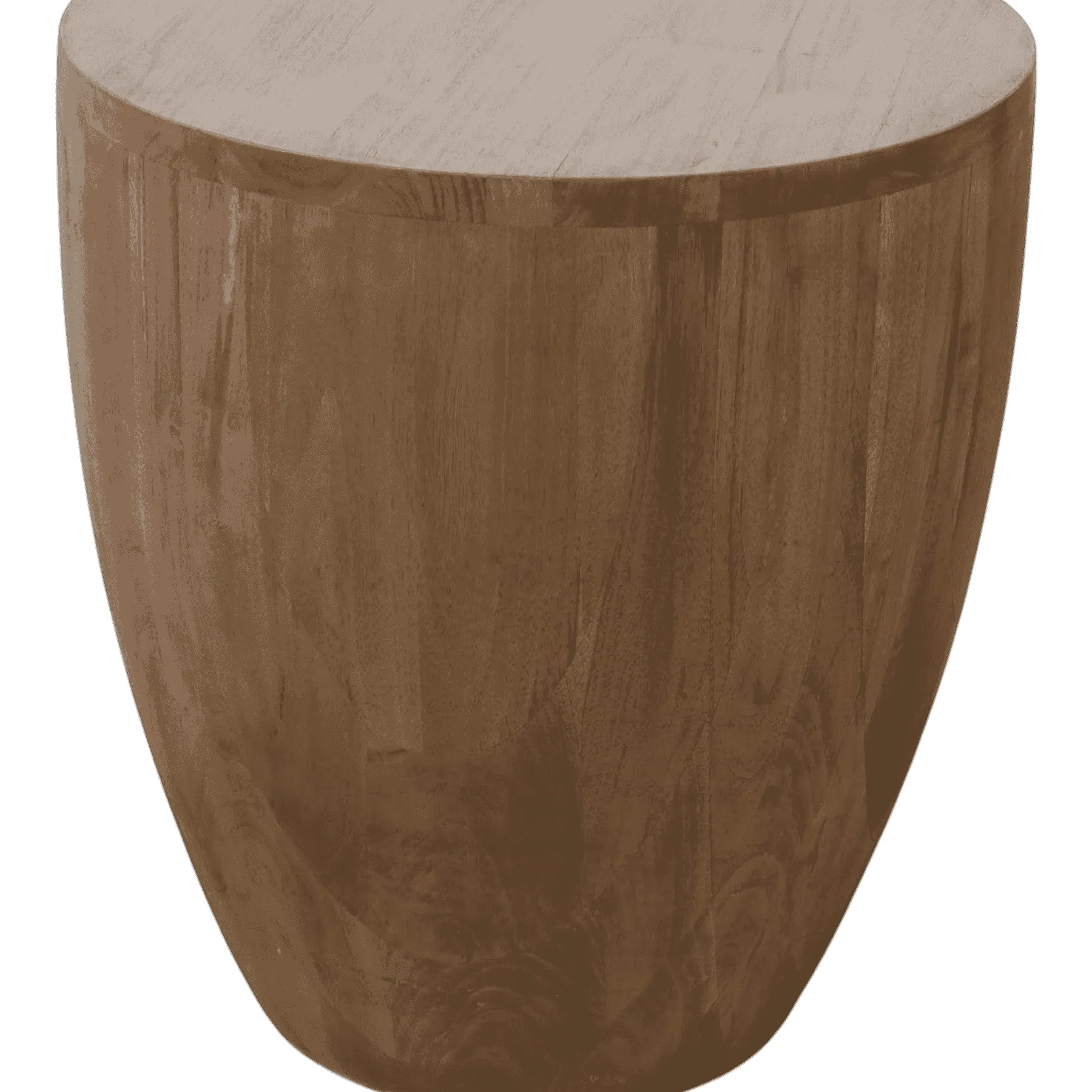Embrace organic minimalism with this solid wood drum stool Its curved silhouette and flat top make it incredibly versatile Use it as a sculptural side table, extra seating, or a minimalist nightstand The piece highlights the natural grain and warm tones of the wood, adding an earthy element to any space