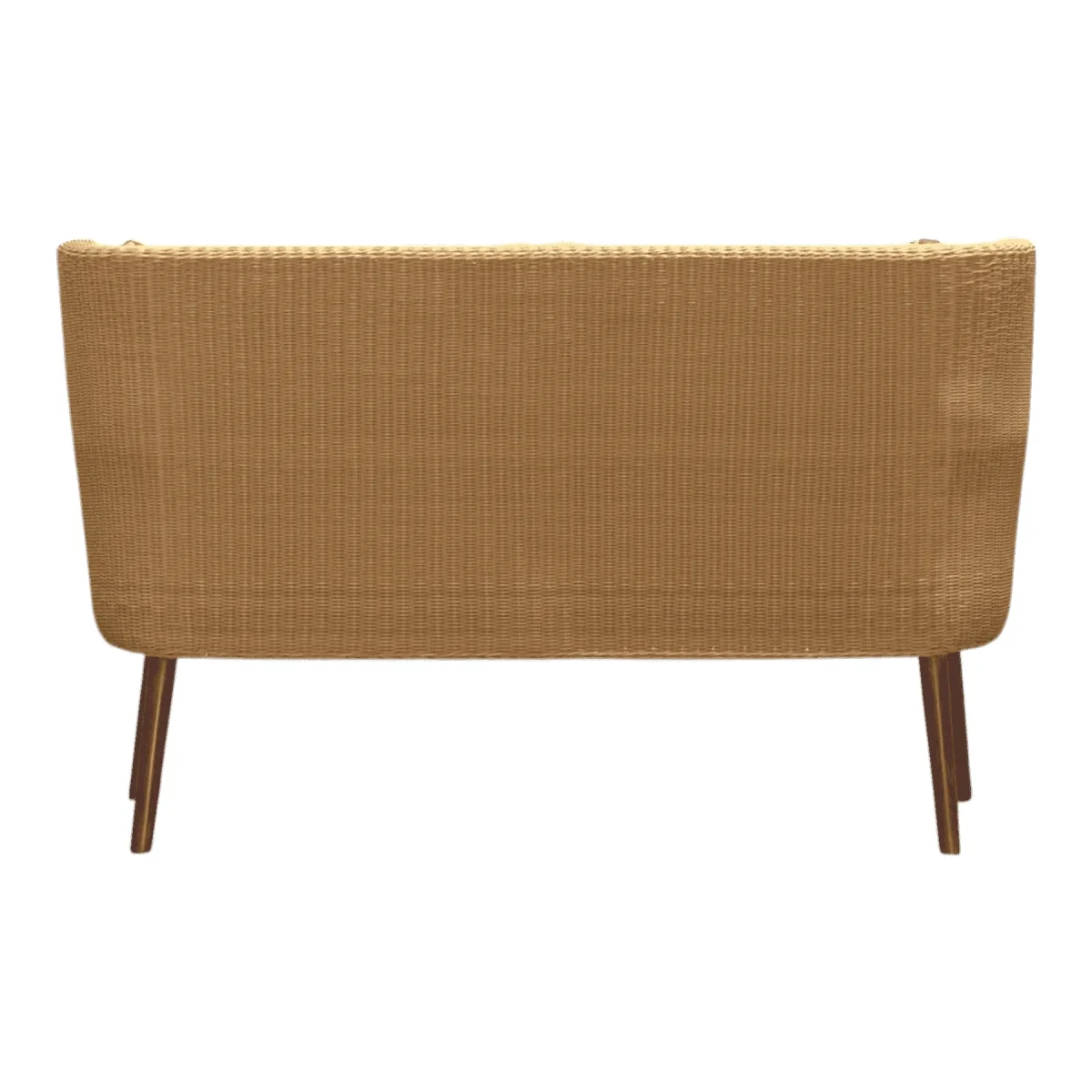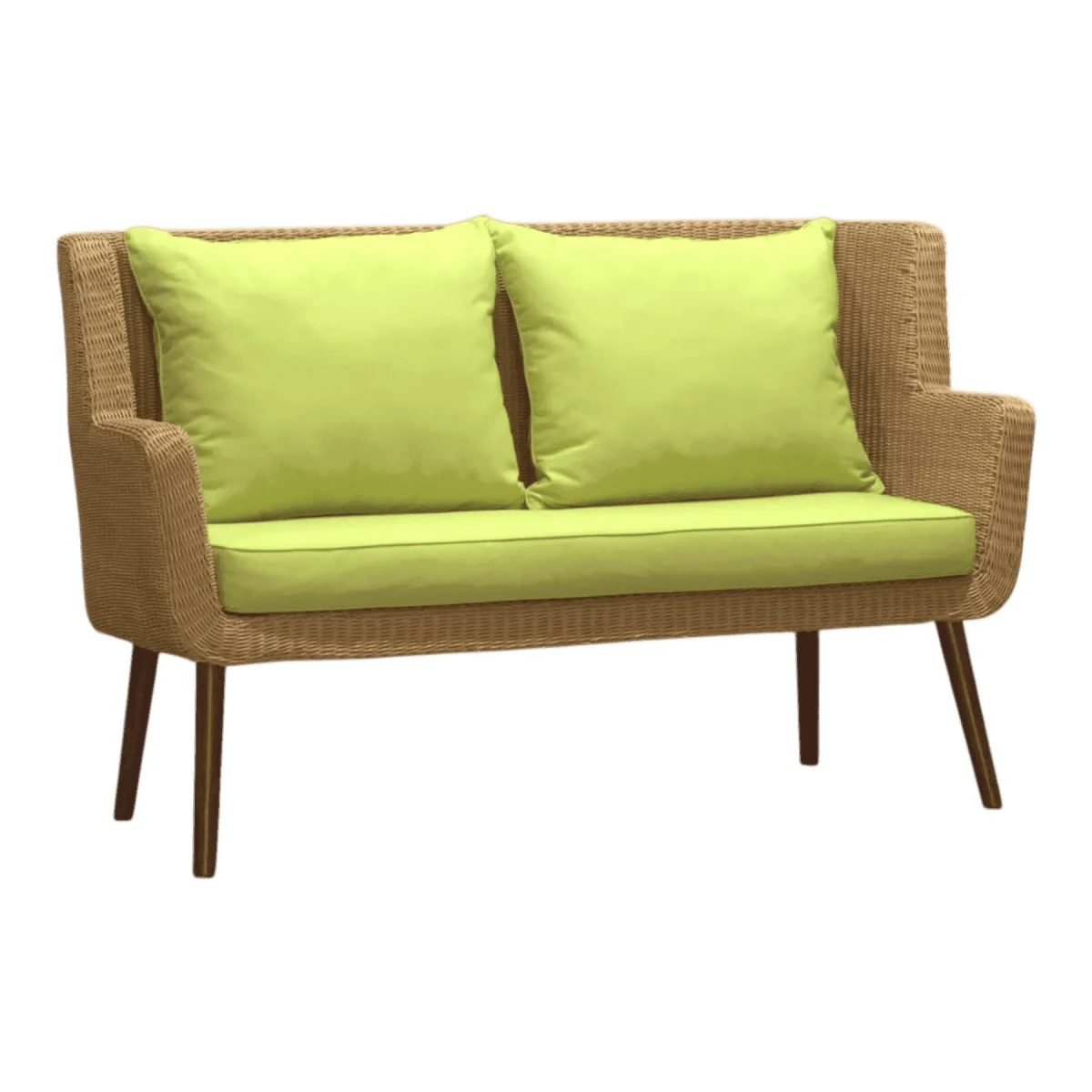 Embrace the airy relaxation of coastal living with this woven rattan loveseat paired with vibrant lime cushions for a pop of freshness The tight wicker weave provides durable support while the angled legs add a mid-century modern flair to this patio or sunroom essential