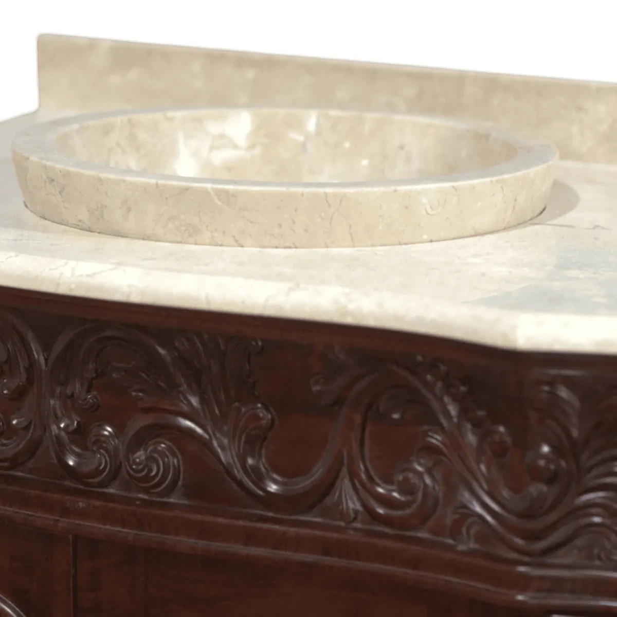 Deep Espresso Mahogany base with a Creamy Beige Marble countertop