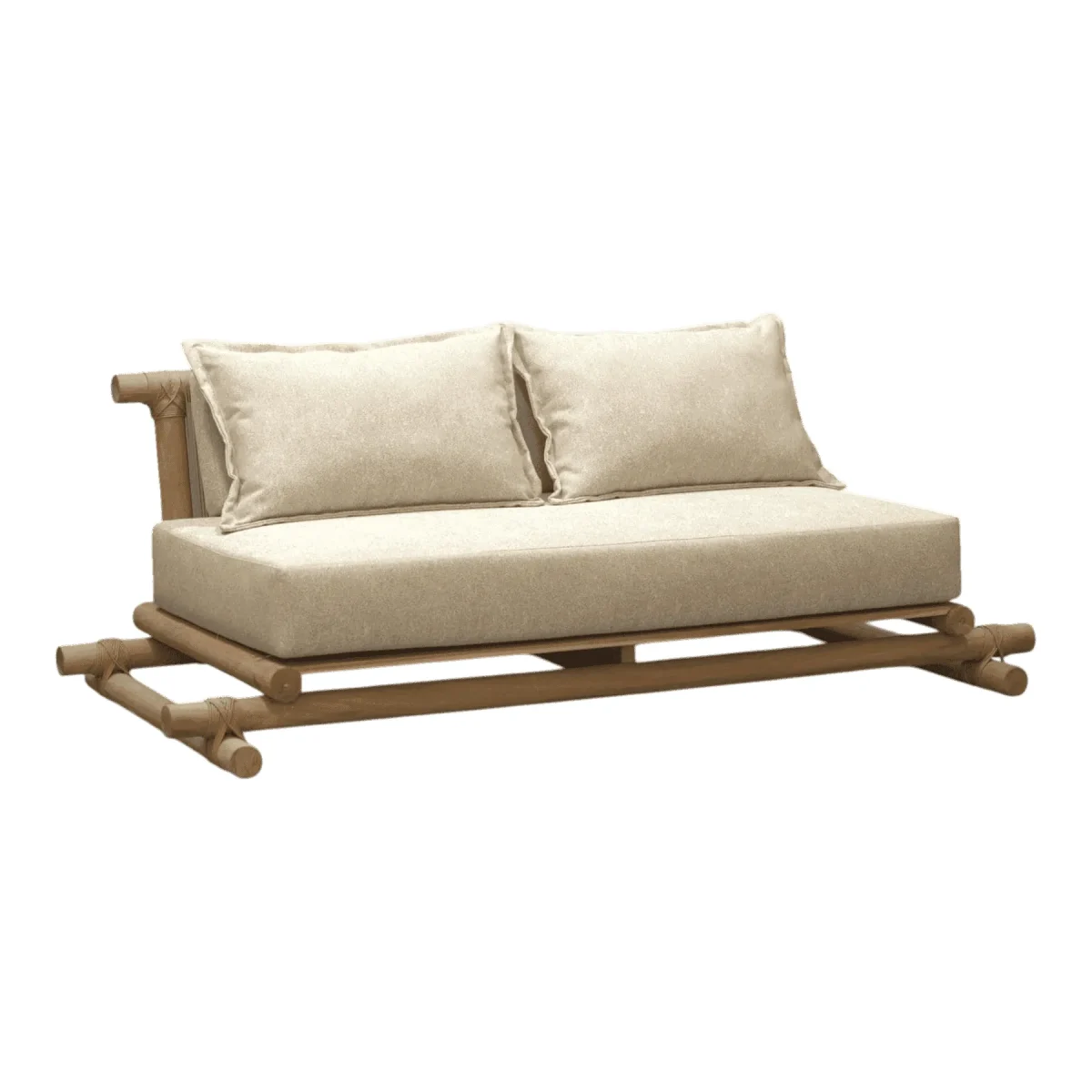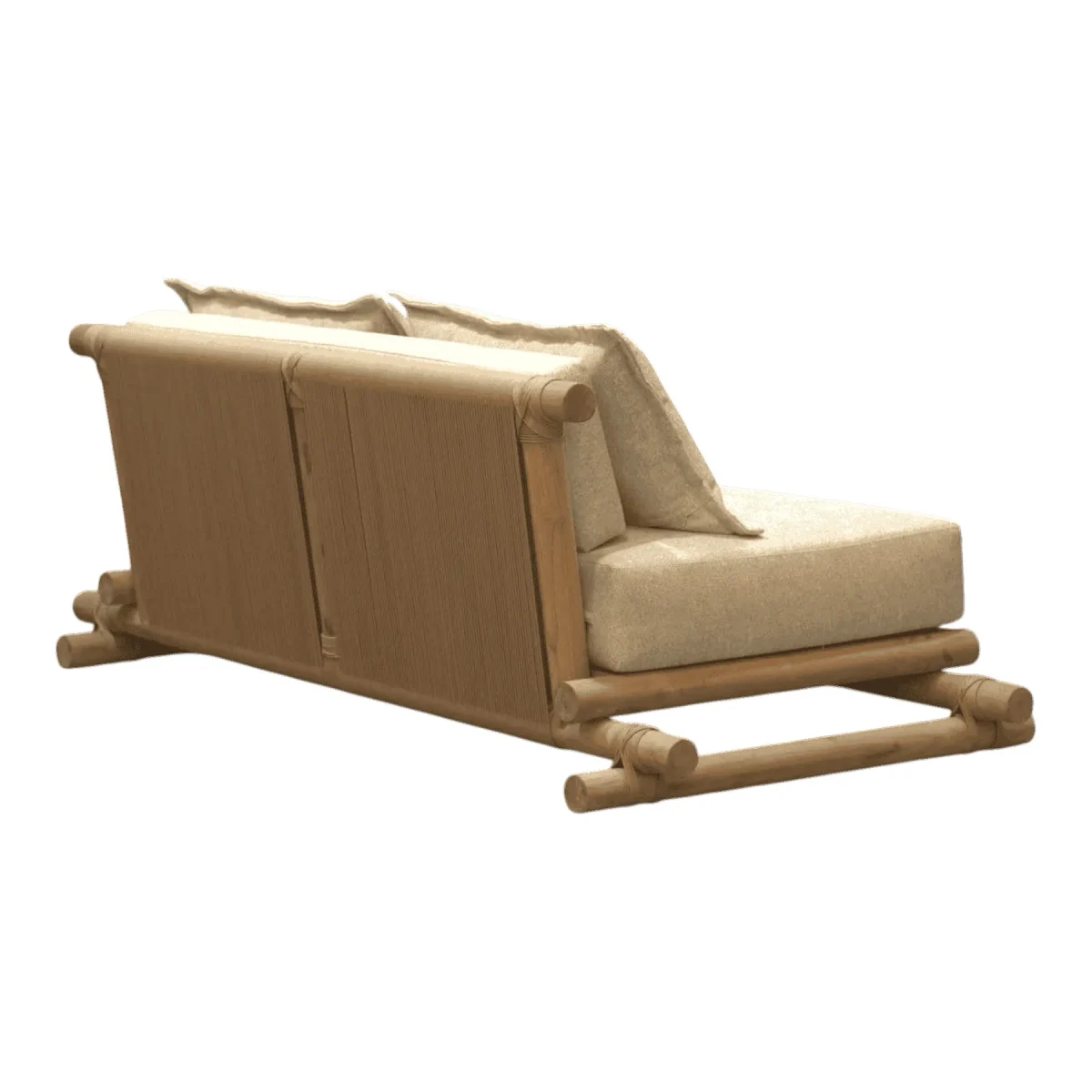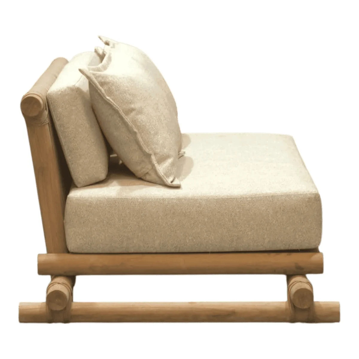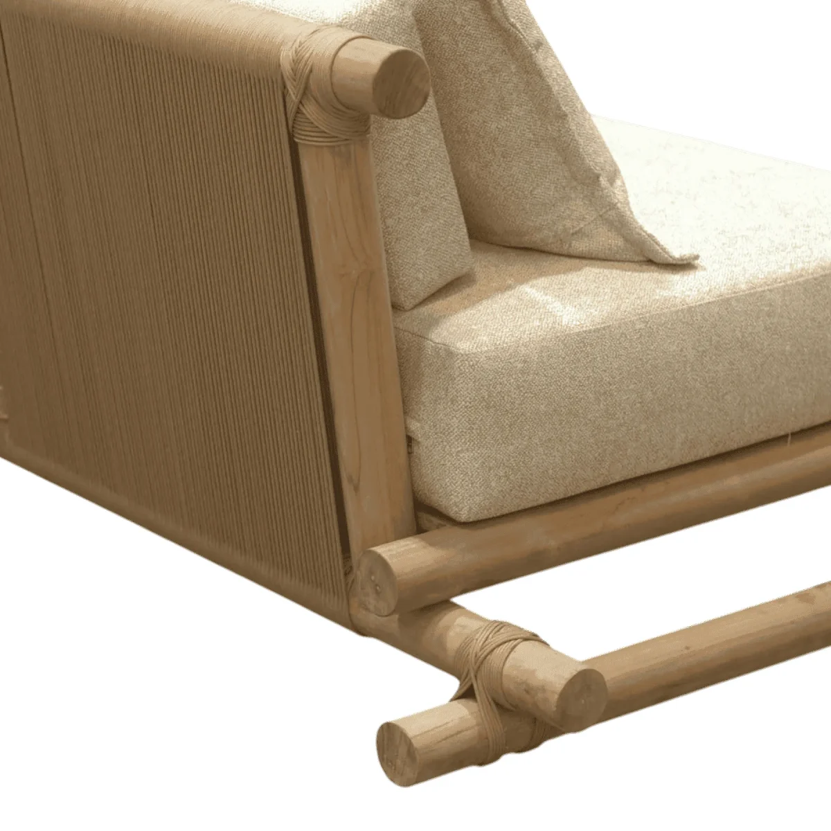 Primary Frame: Teak Wood | Joinery: Lashing/Rope Binding | Finish: Raw/Natural Sanded | Upholster & Cushion: Heavy Duty Canvas